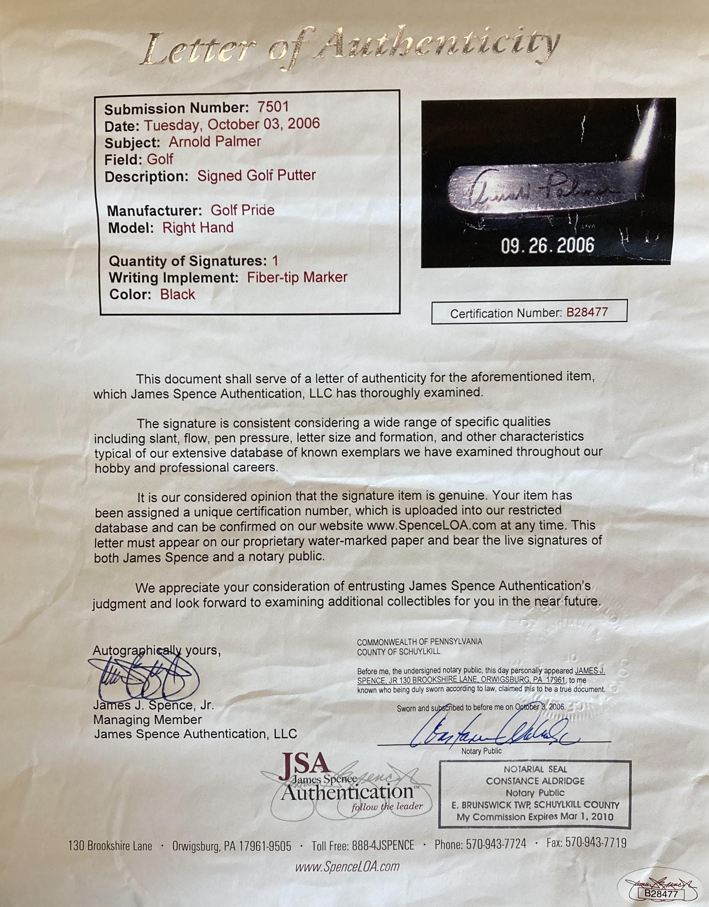Arnold Palmer Signed Vintage Putter (JSA)