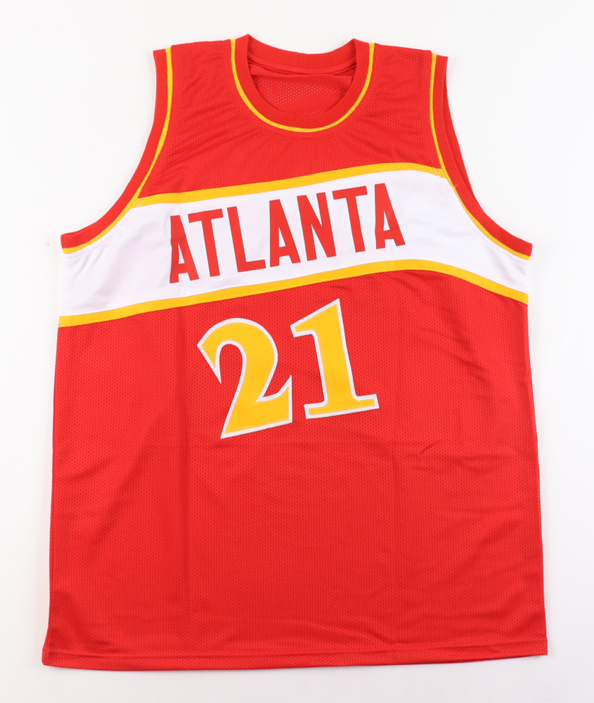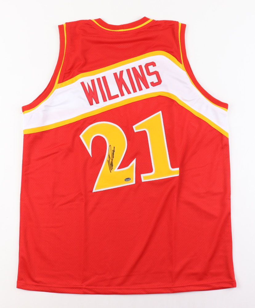 Custom jersey with everything sewn on, size XL. Hand-signed by Dominique Wilkins (HOF).