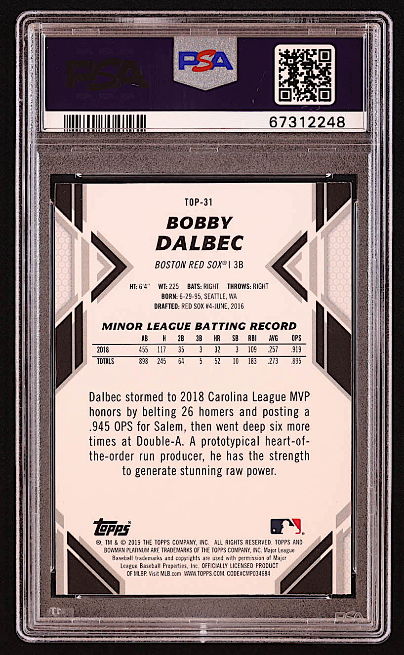 Bobby Dalbec 2019 Bowman Platinum Top Prospects Ice #TOP31 RC (PSA 10)