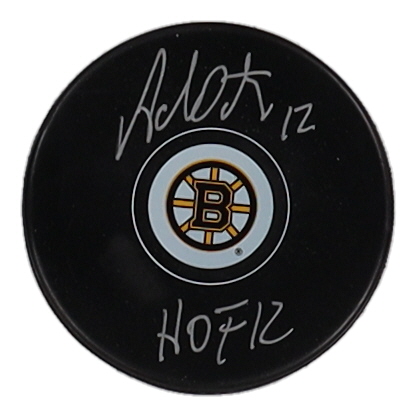 Adam Oates Signed Bruins Logo Hockey Puck Inscribed "HOF 12" (Schwartz)