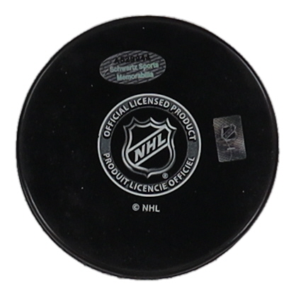 Boston Bruins logo hockey puck has been hand-signed and inscribed by Adam Oates (HOF).