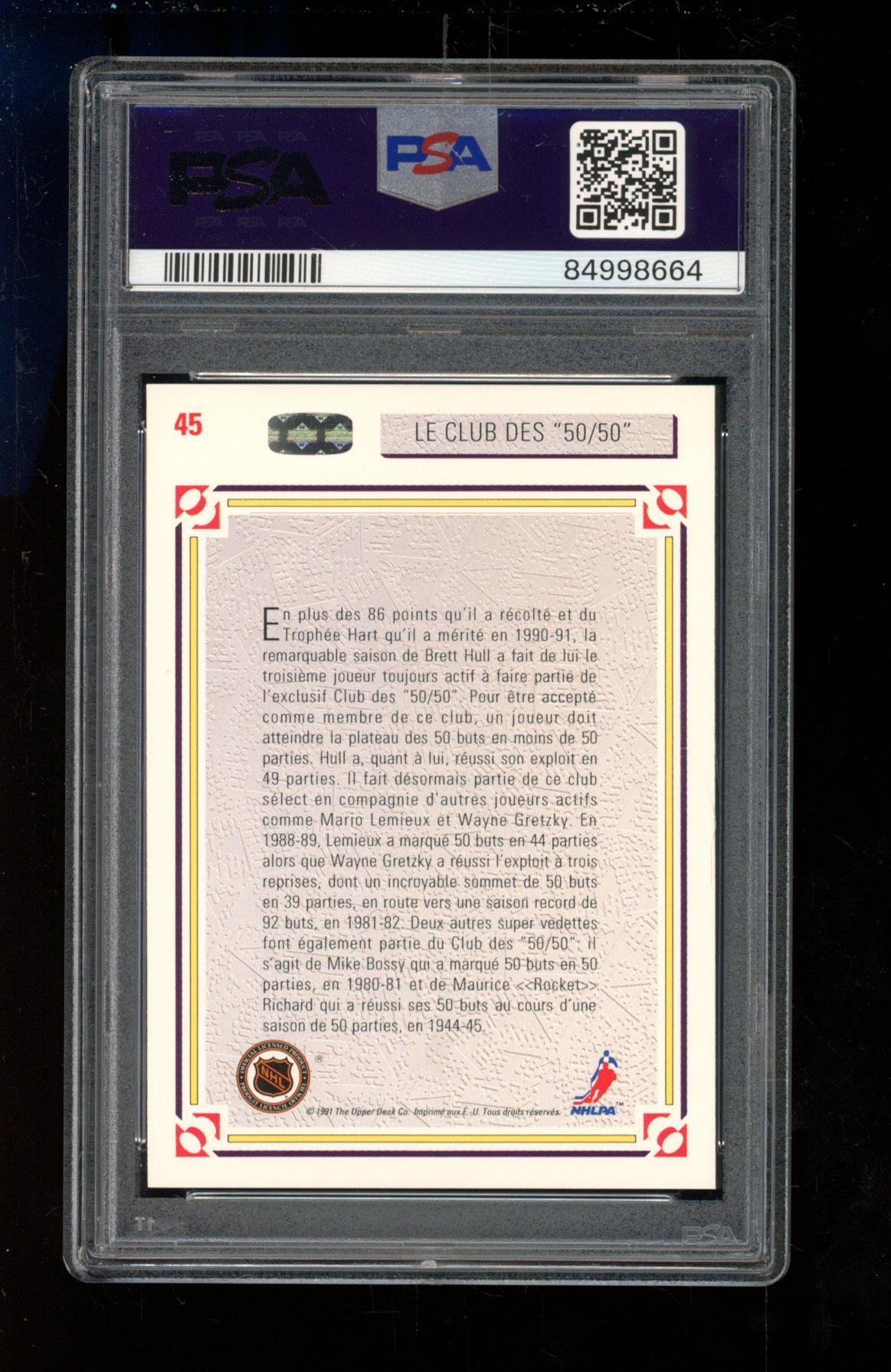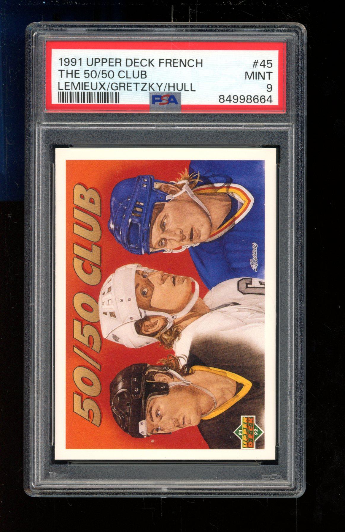 Mario Lemieux / Wayne Gretzky / Brett Hull 1991-92 Upper Deck The 50/50 Club / French #45 (PSA 9)