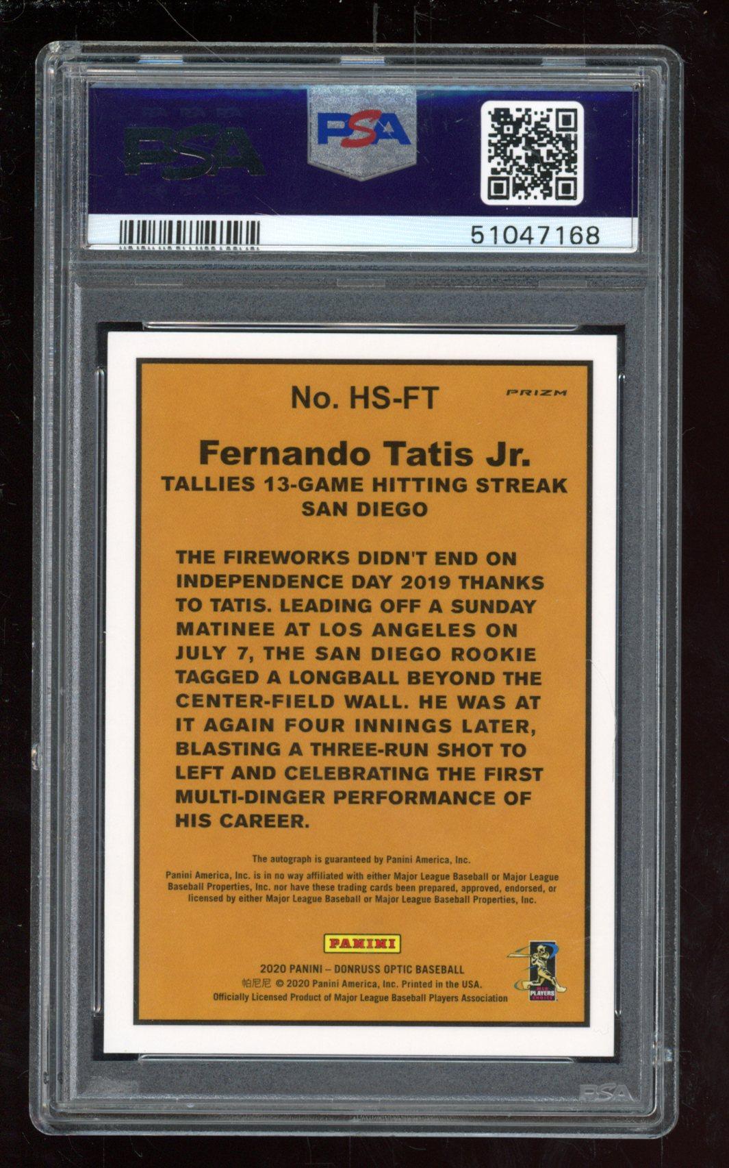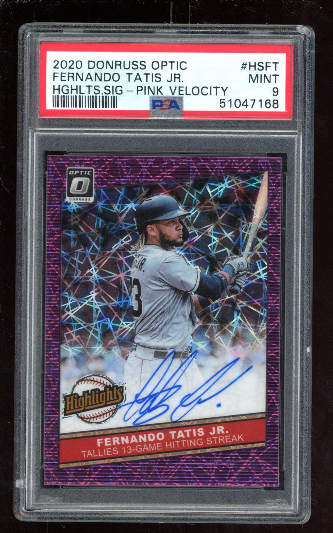 Fernando Tatis Jr. 2020 Donruss Optic Highlights Signatures Pink Velocity #18 (PSA 9)