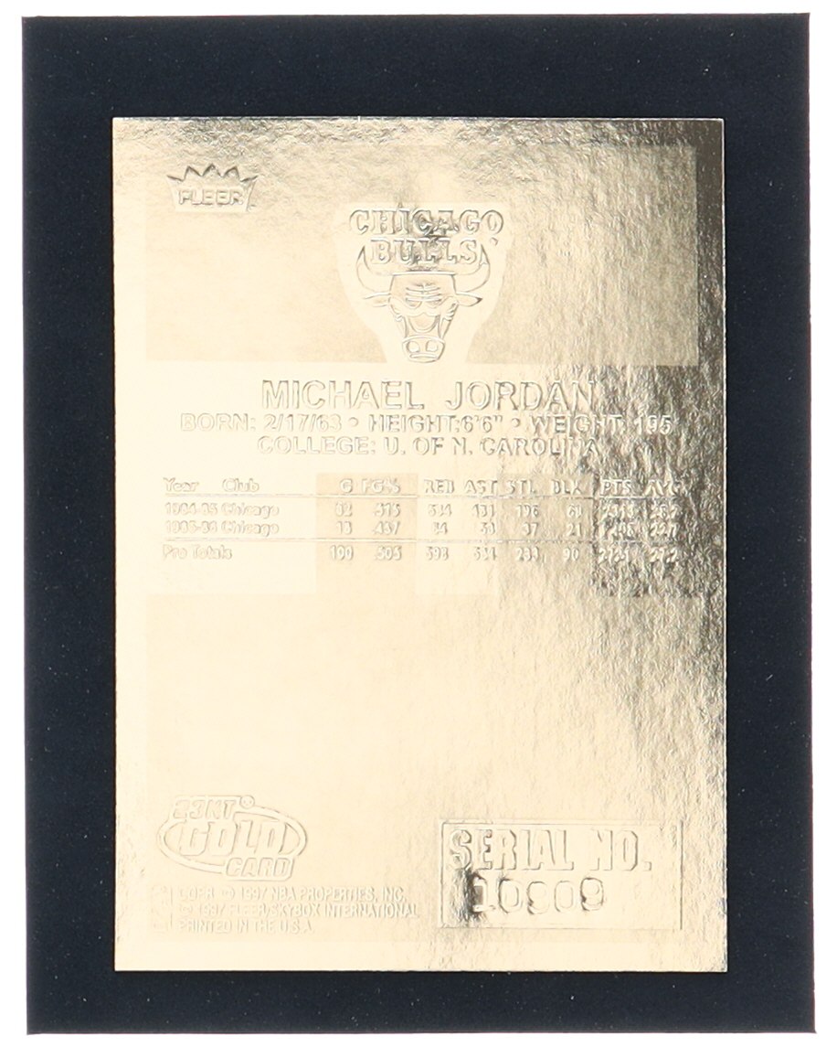 Michael Jordan 1997 Fleer Premier Signature Series Red Holo Refractor 23Kt Gold Card