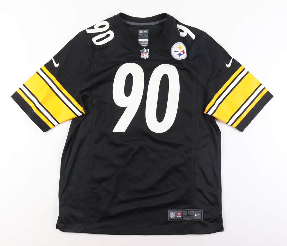 Nike jersey with everythin printed on, size L. Hand-signed by T. J. Watt (Pittsburgh Steelers). Please note, there are stains on the reverse number.