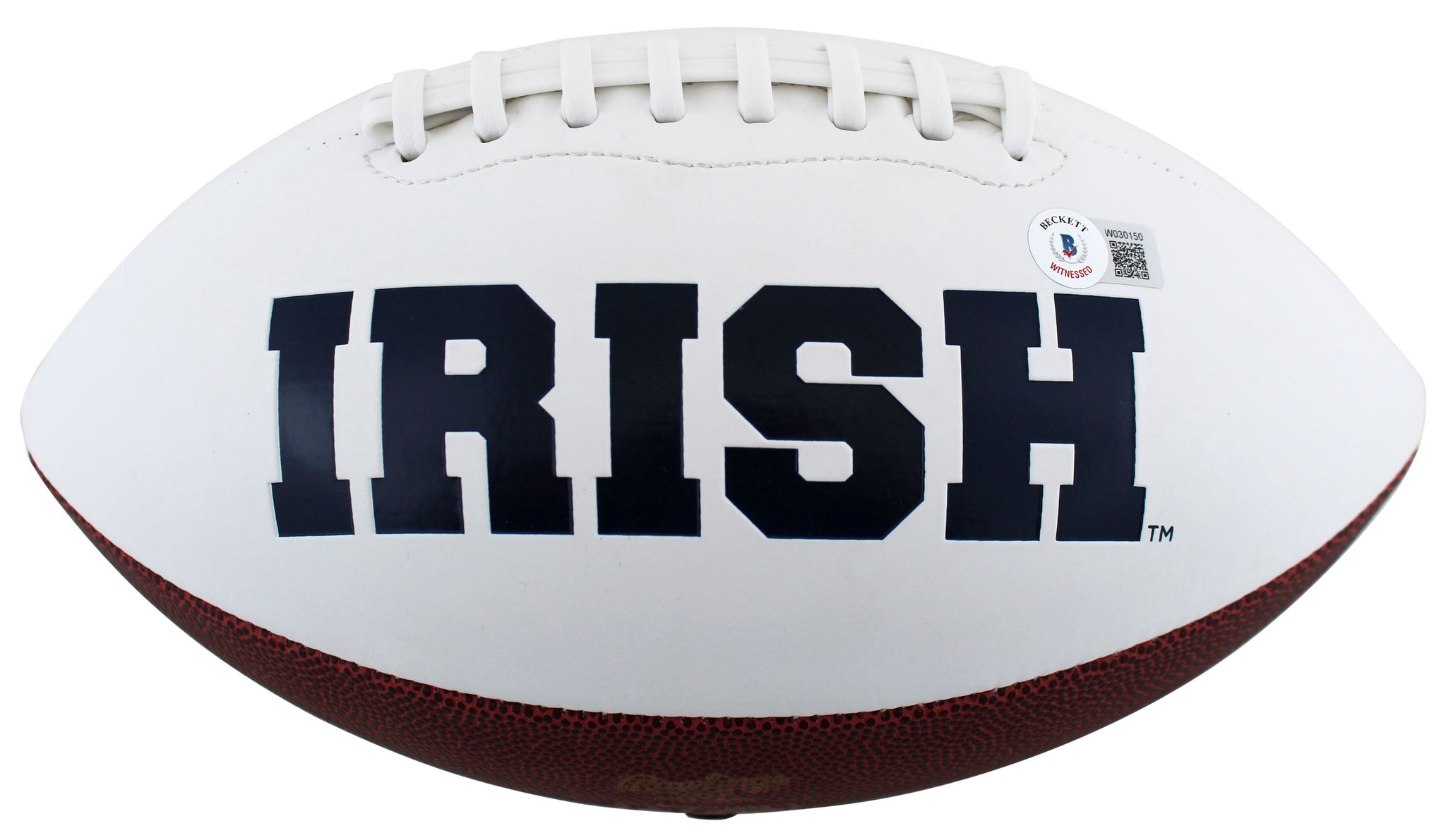 Notre Dame Fighting Irish logo football has been hand-signed and inscribed by Michael Mayer.
