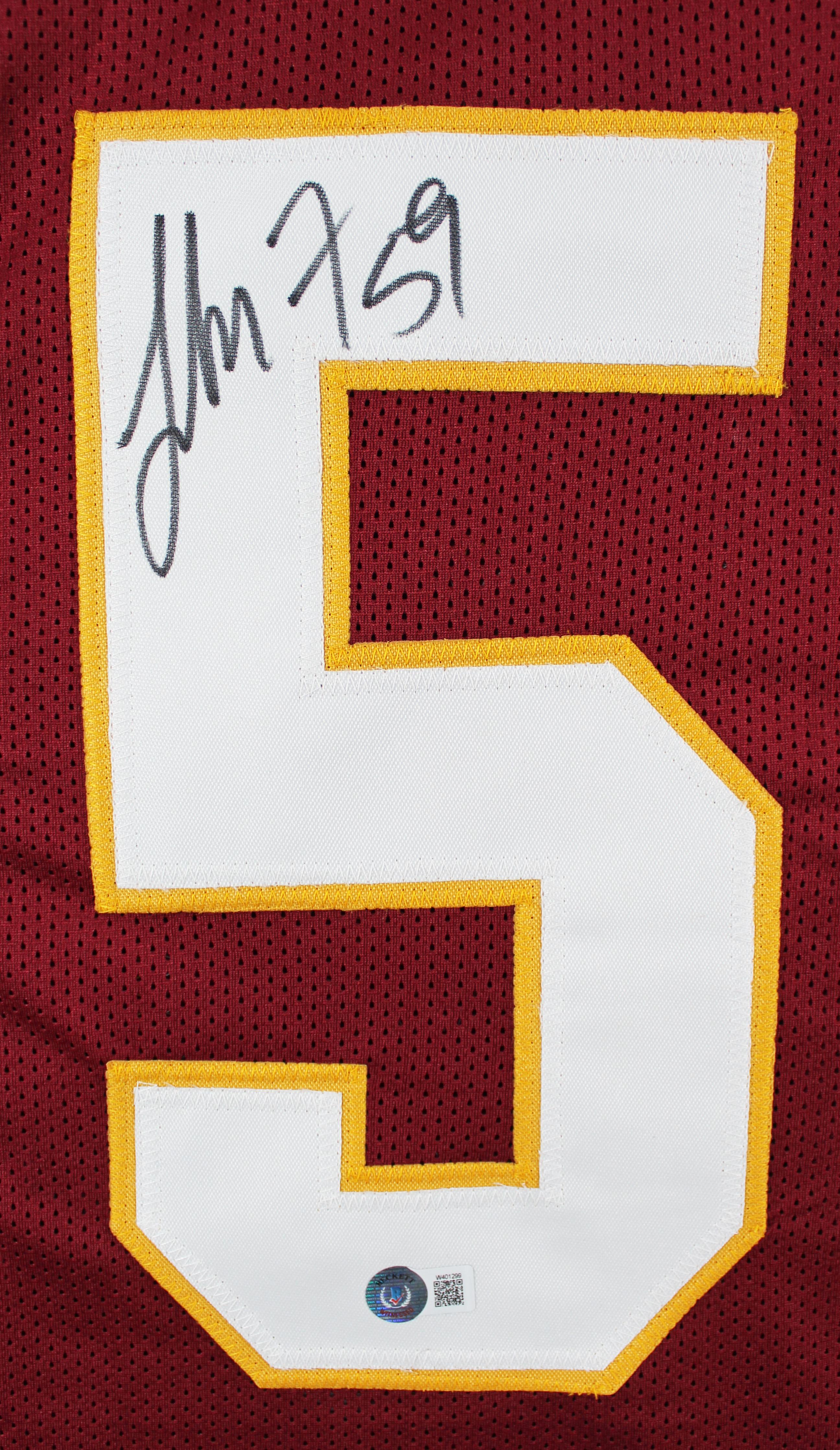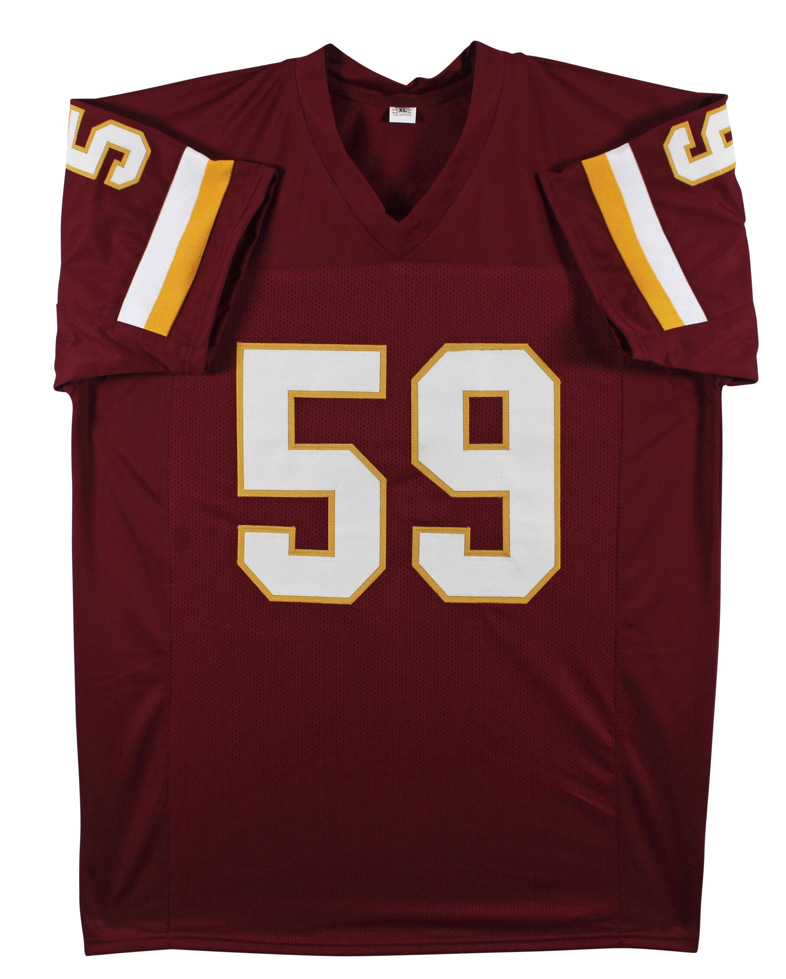 Custom jersey is size XL, everything is sewn on, and has been hand-signed by London Fletcher.