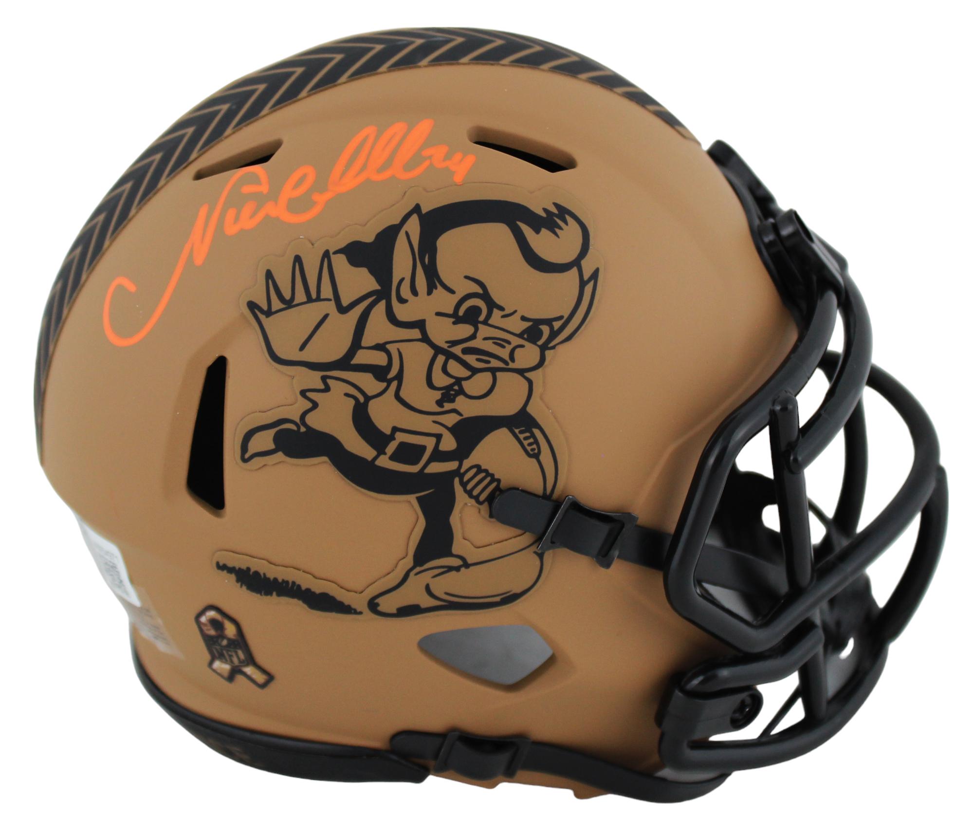 Nick Chubb Signed Browns Salute To Service Alternate Speed Mini Helmet (Beckett)