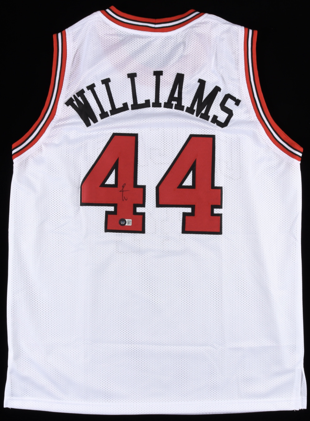 Custom jersey. Everything is sewn on, size XL. Hand-signed by Patrick Williams.