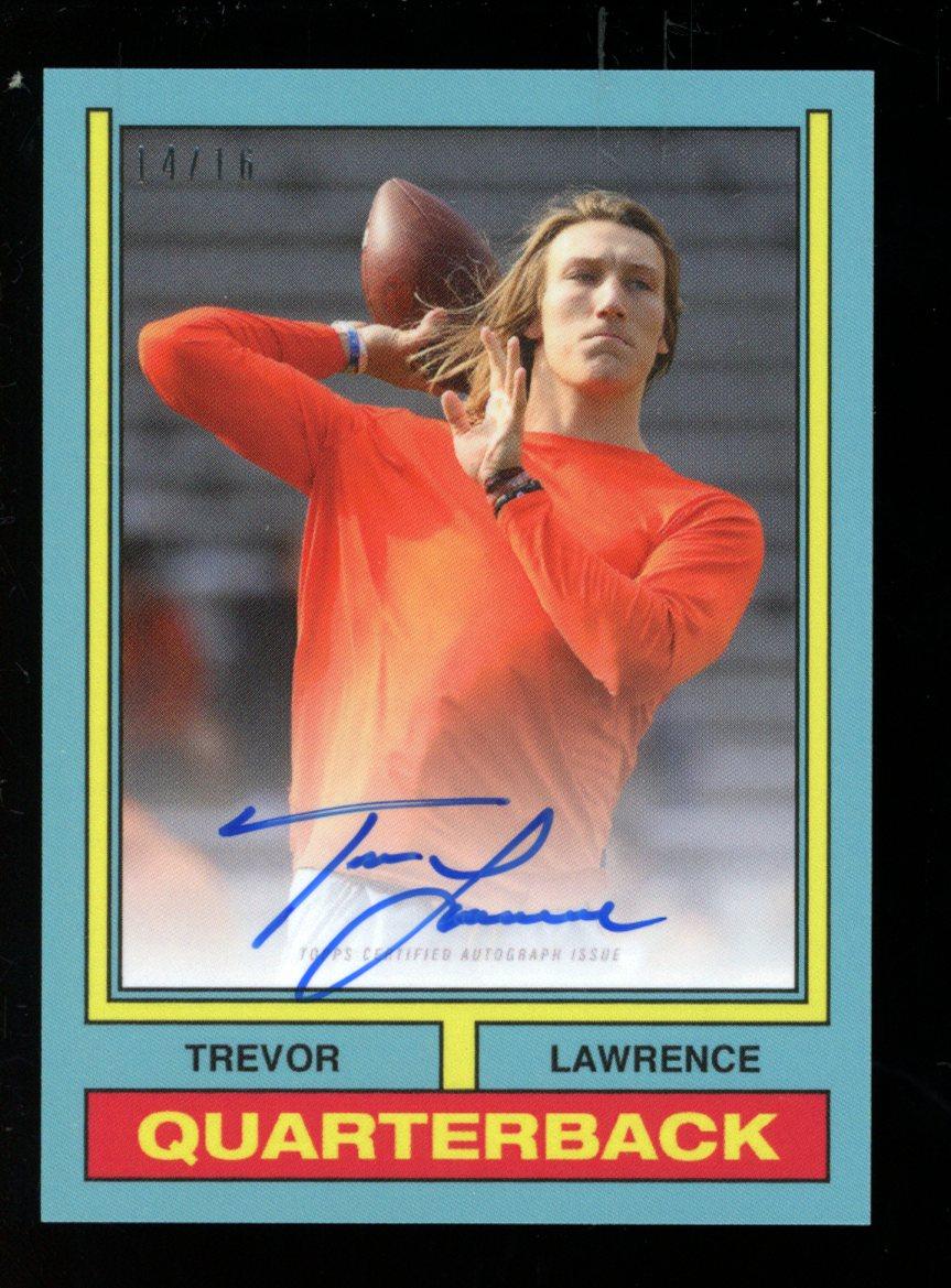 Trevor Lawrence 2021 Topps X Trevor Lawrence Autographs Teal / 1974 Topps Football #15 #/16 RC