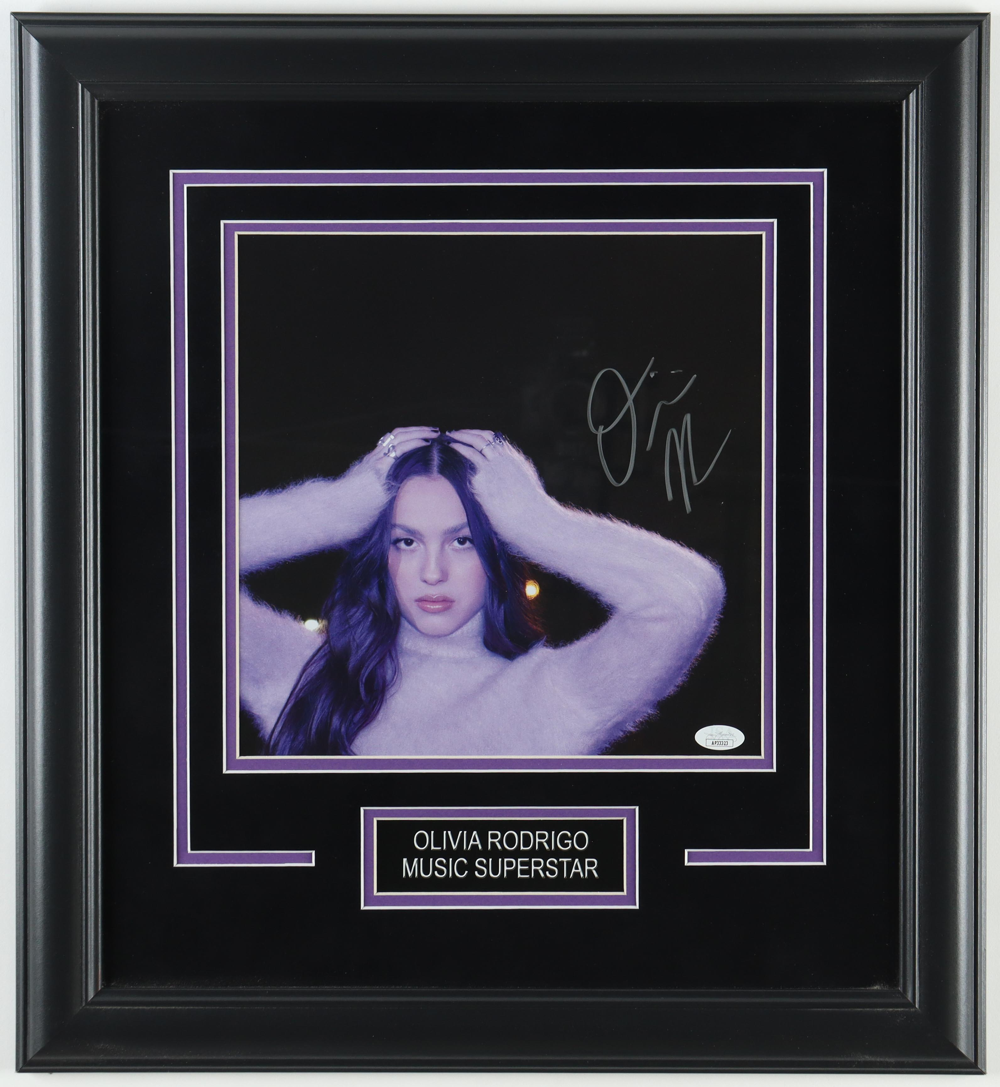 Custom frame measures approximately 19.5” x 21.5” in size and features a photo that has been hand-signed by Olivia Rodrigo.