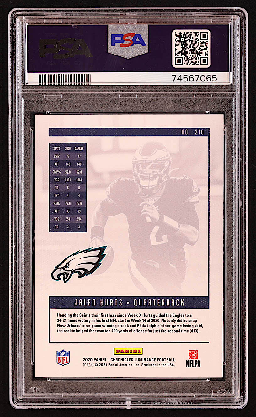 Jalen Hurts 2020 Panini Luminance Teal #210 Chronicles RC (PSA 10)