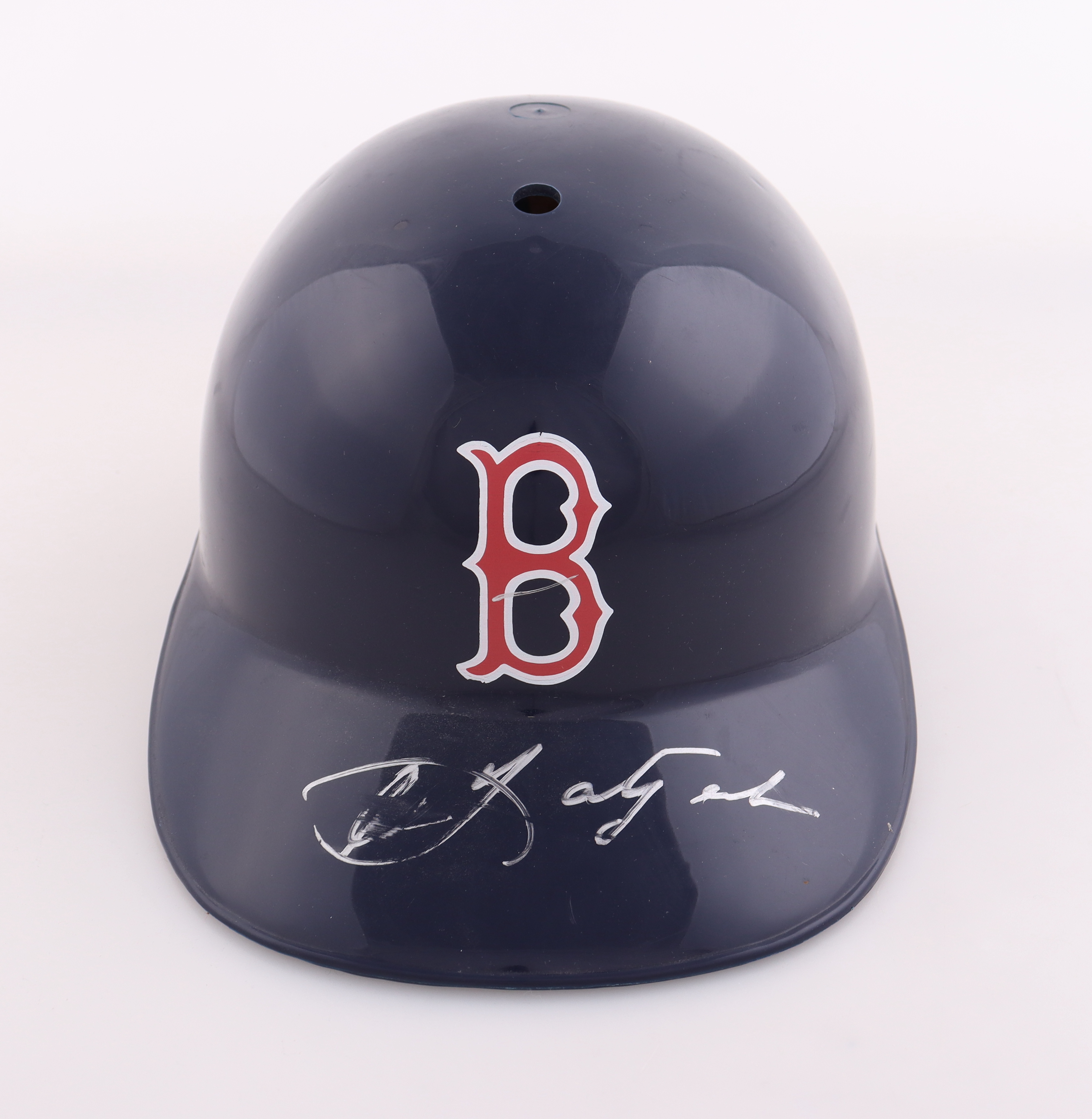 Boston Red Sox full-size replica plastic souvenir helmet. Hand-signed by Carl Yastrzemski (Boston Red Sox, HOF). Please note the signature is scuffed.