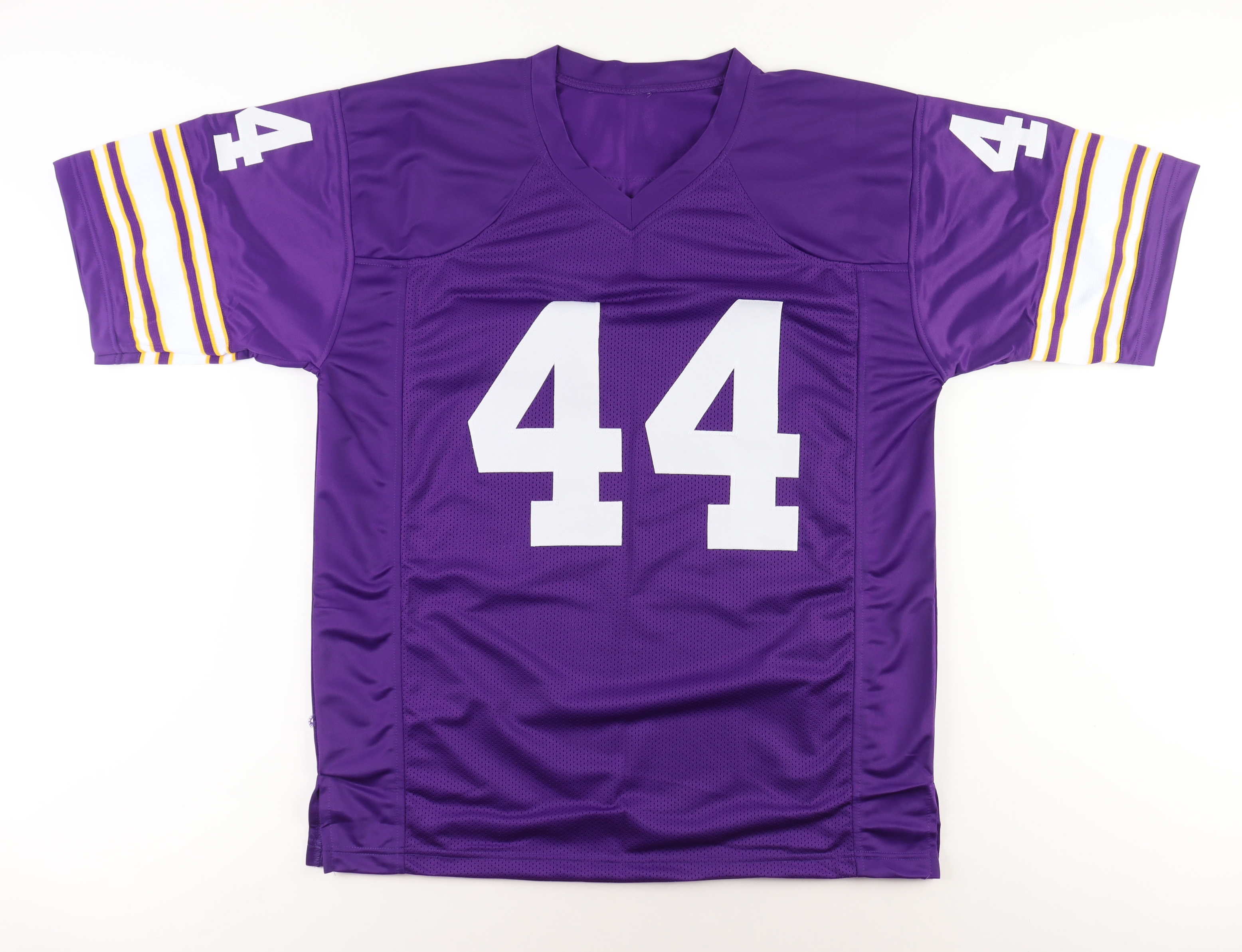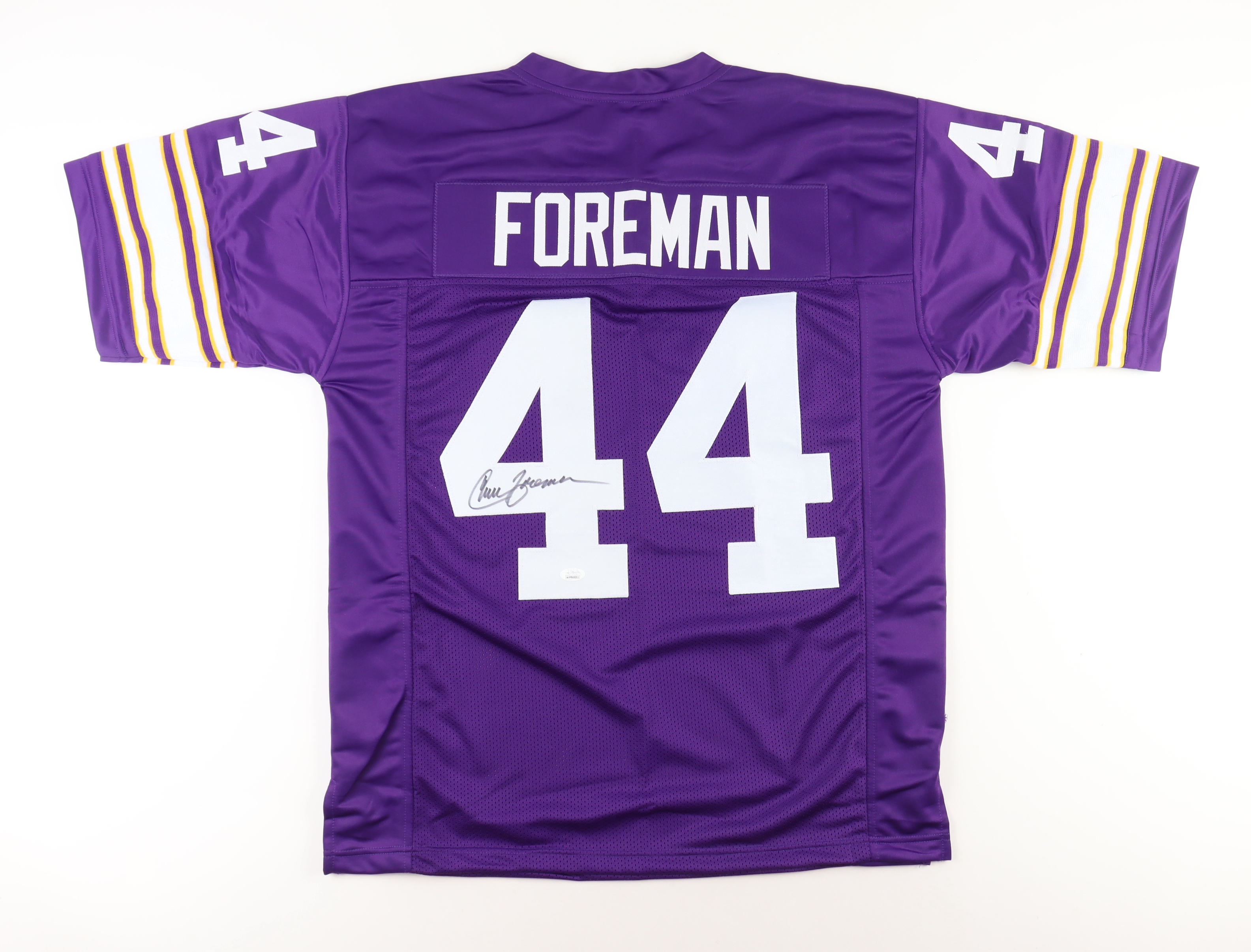Custom jersey with everything sewn on, size XL. Hand-signed by Chuck Foreman.