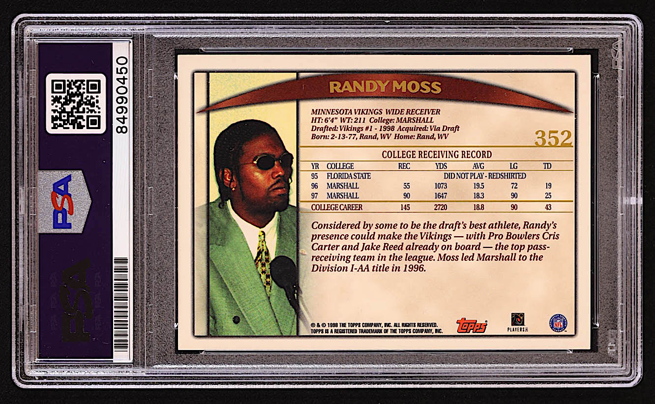 Randy Moss Signed 1998 Topps #352 RC (PSA | Auto Grade 10)