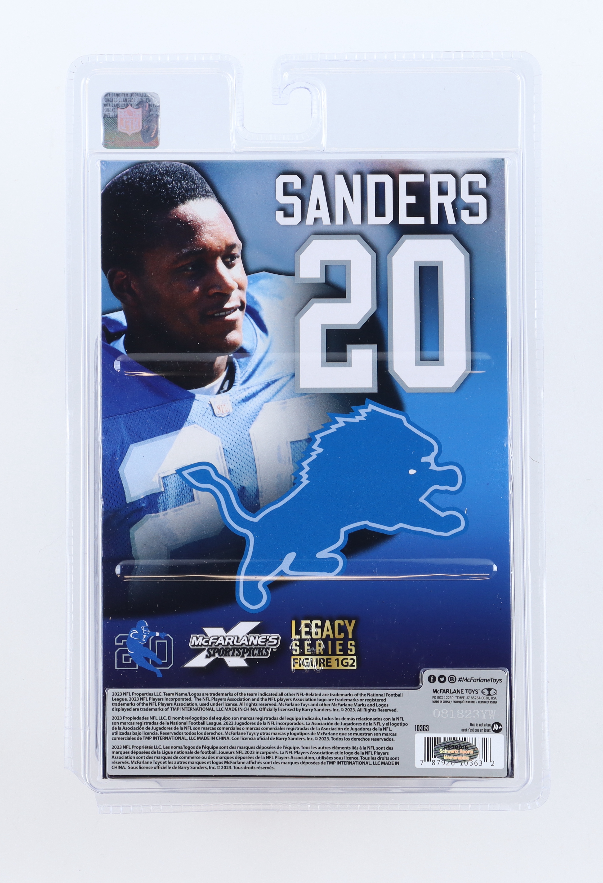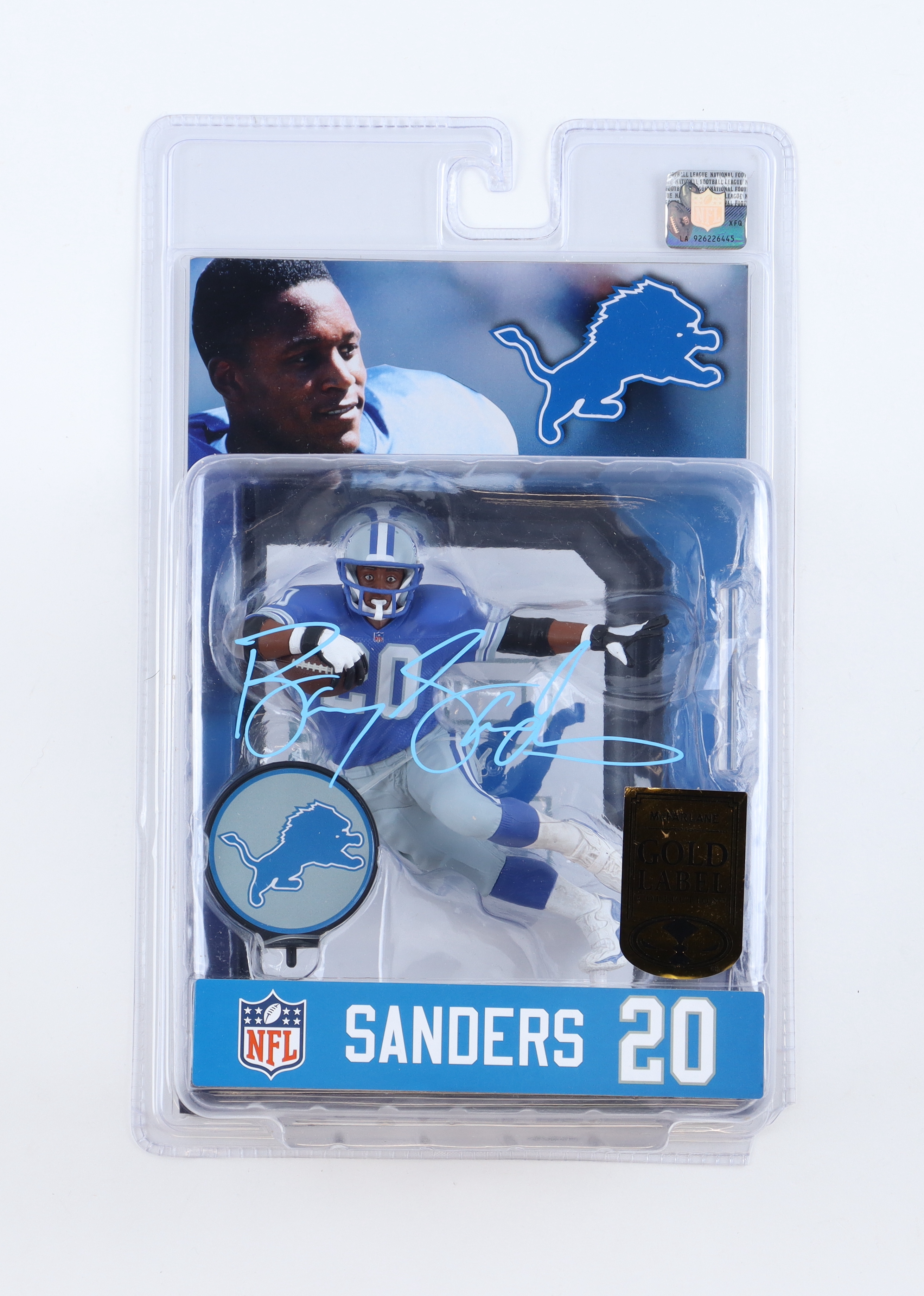 McFarlane Toys figurine has been hand-signed on the front packaging by Barry Sanders (Detroit Lions, HOF).