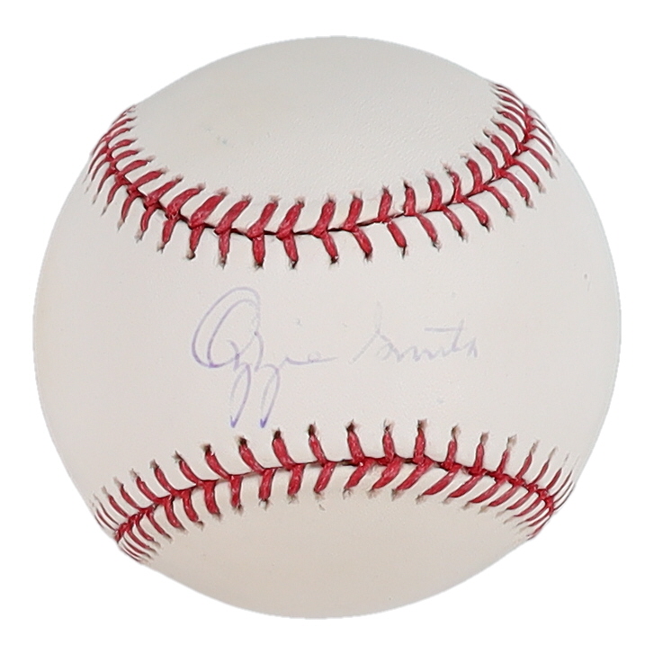 Rawlings Official Major League baseball. Hand-signed by Ozzie Smith (St. Louis Cardinals, HOF). Please note, the baseball is naturally toned and the signature is faded. Includes case as shown.