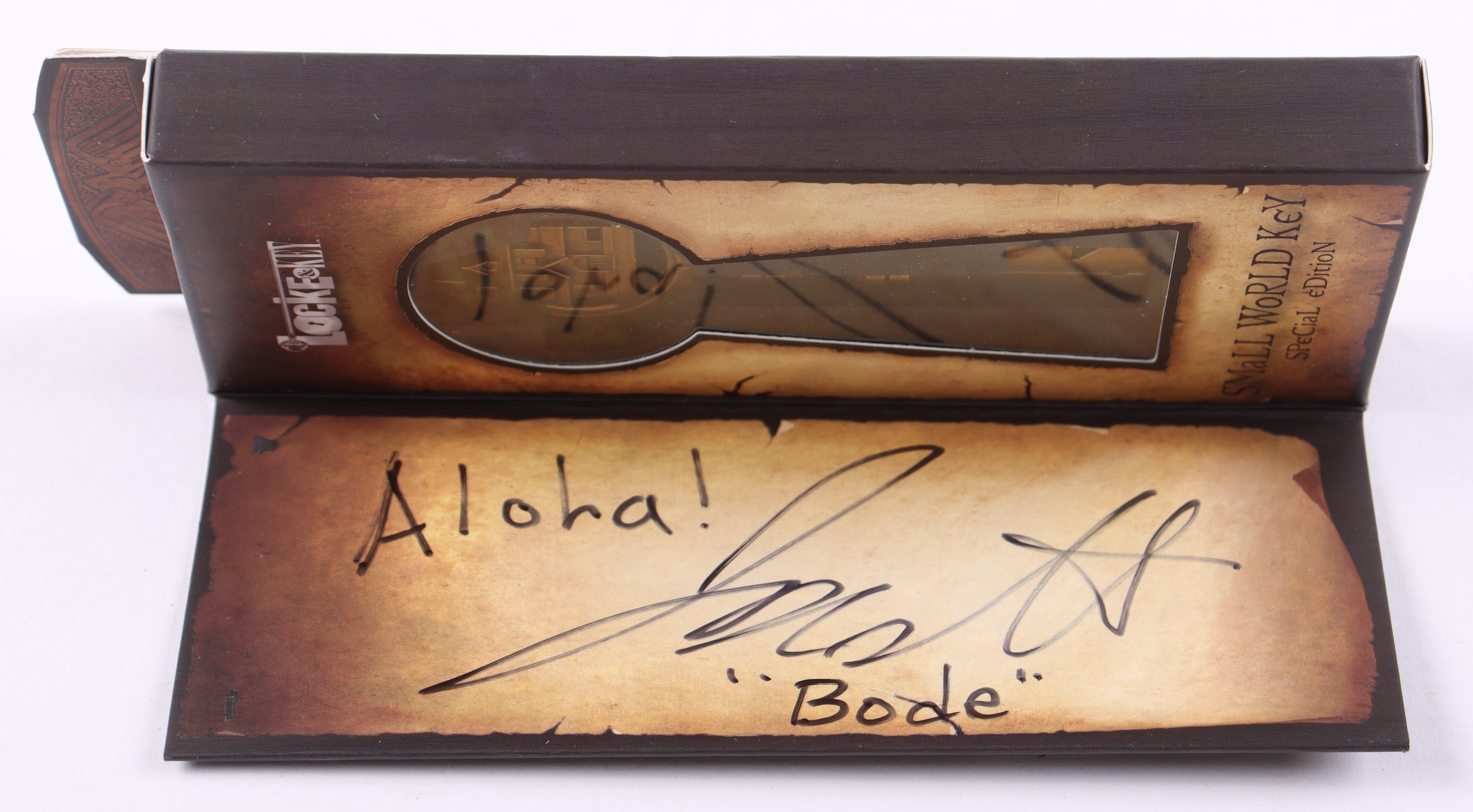 Jackson Robert Scott Signed "Locke & Key" Small World Key Special Edition Key Inscribed "Aloha!" & "Bode" (PA COA)