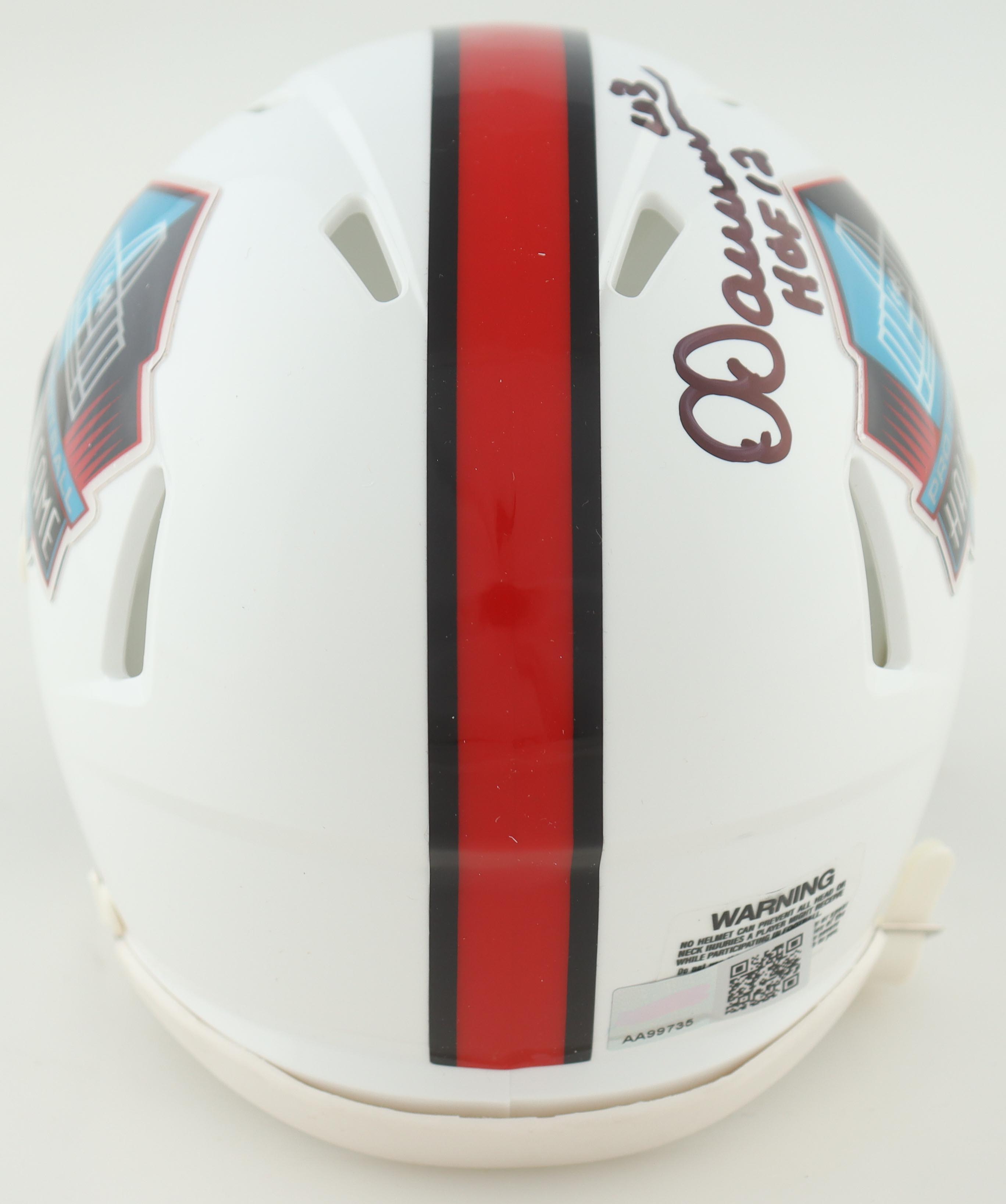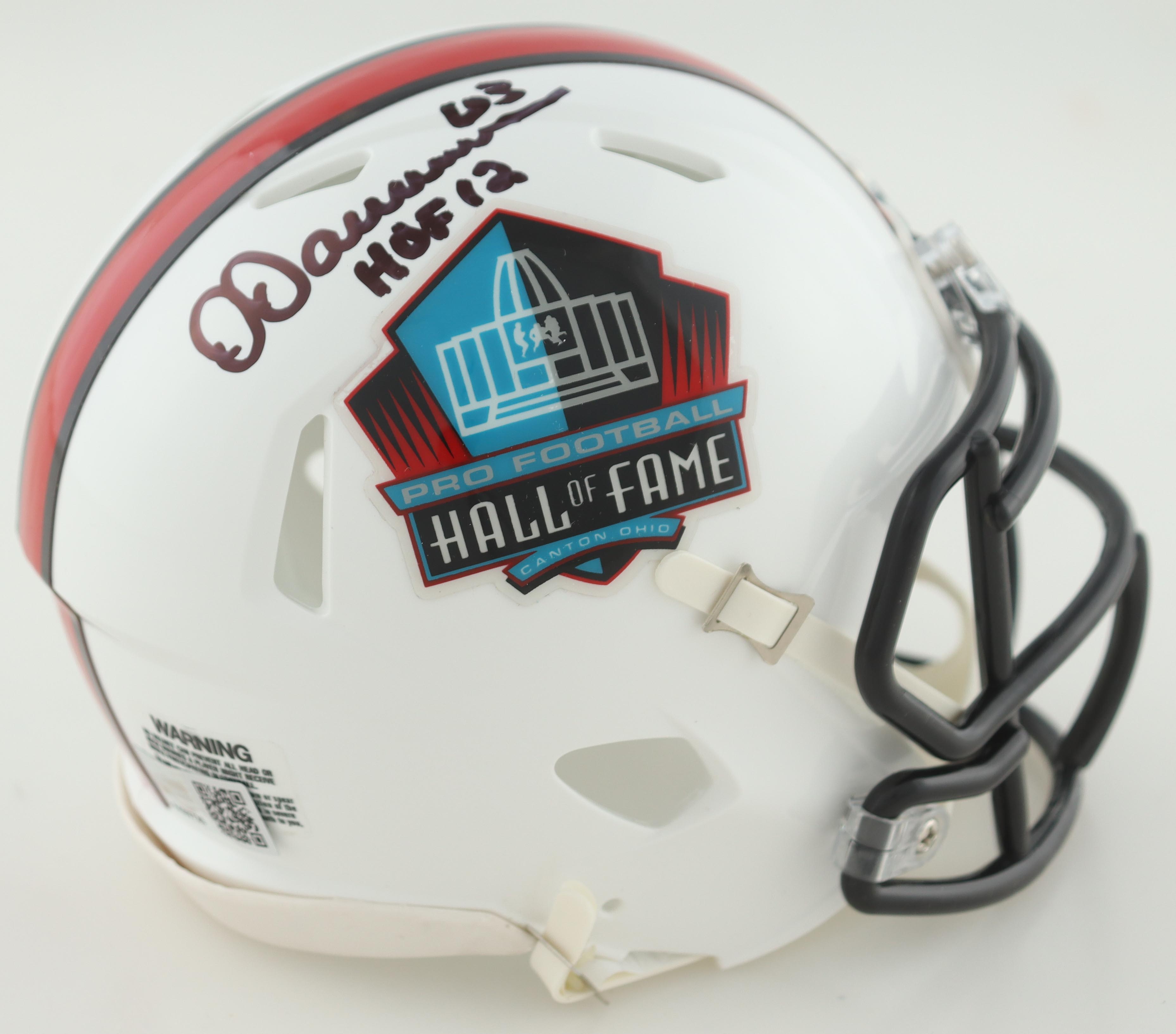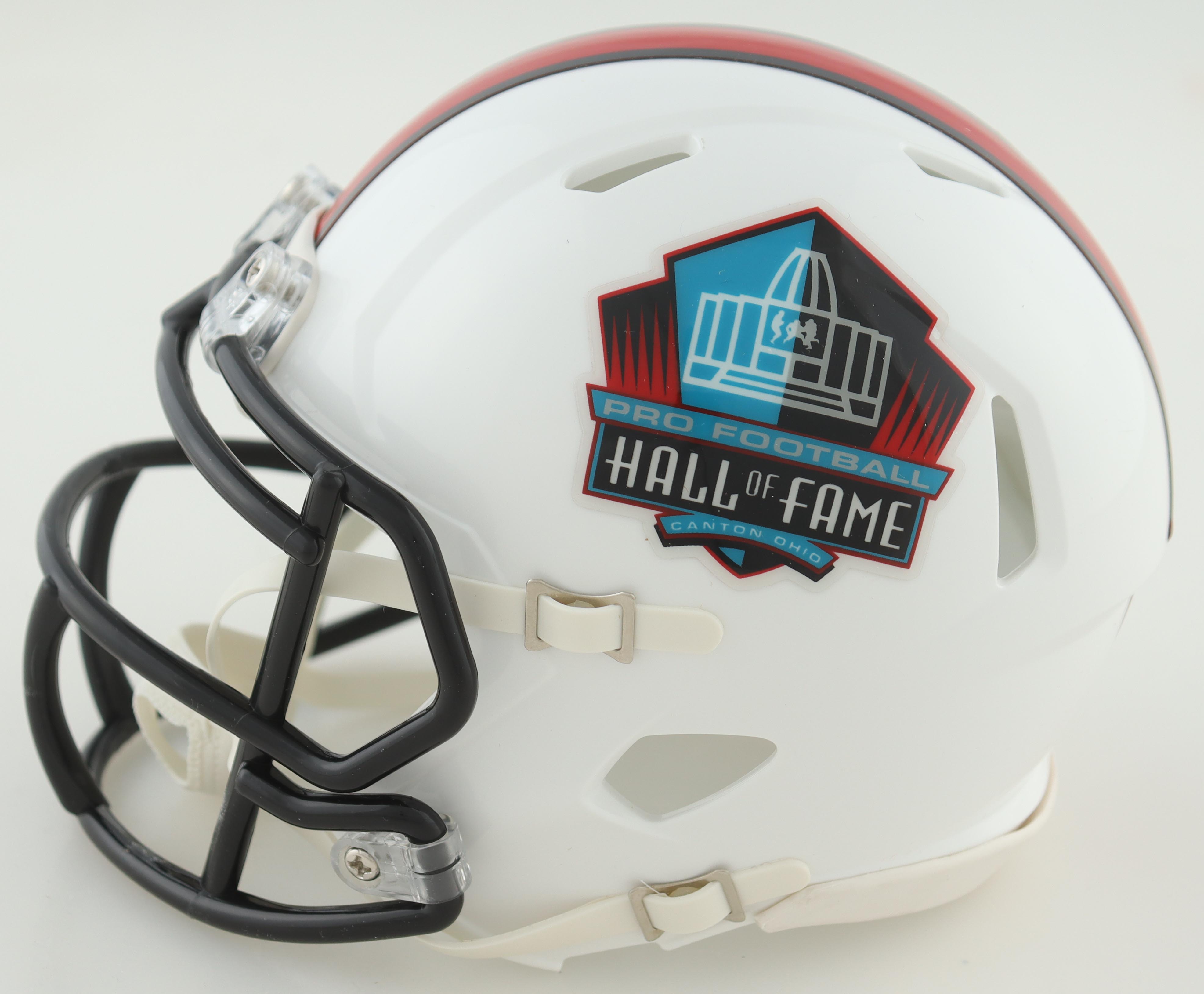 Riddell NFL Hall of Fame logo speed mini helmet. Hand-signed and inscribed by Dermontti Dawson (Pittsburgh Steelers, HOF).