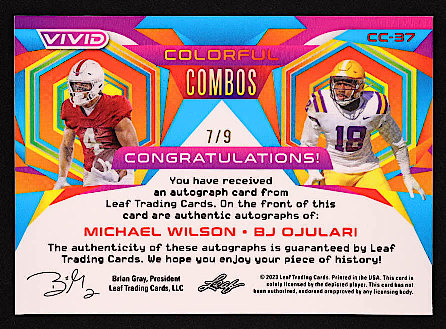 Michael Wilson / BJ Ojulari 2023 Leaf Vivid Colorful Combos Prismatic Silver #CC37 #7/9 RC