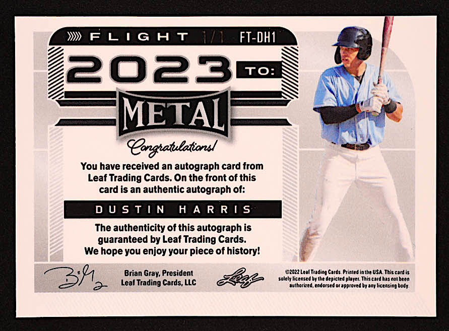 Dustin Harris 2022 Leaf Metal Flight 2023 Prismatic Gold #FTDH1 #1/1 RC