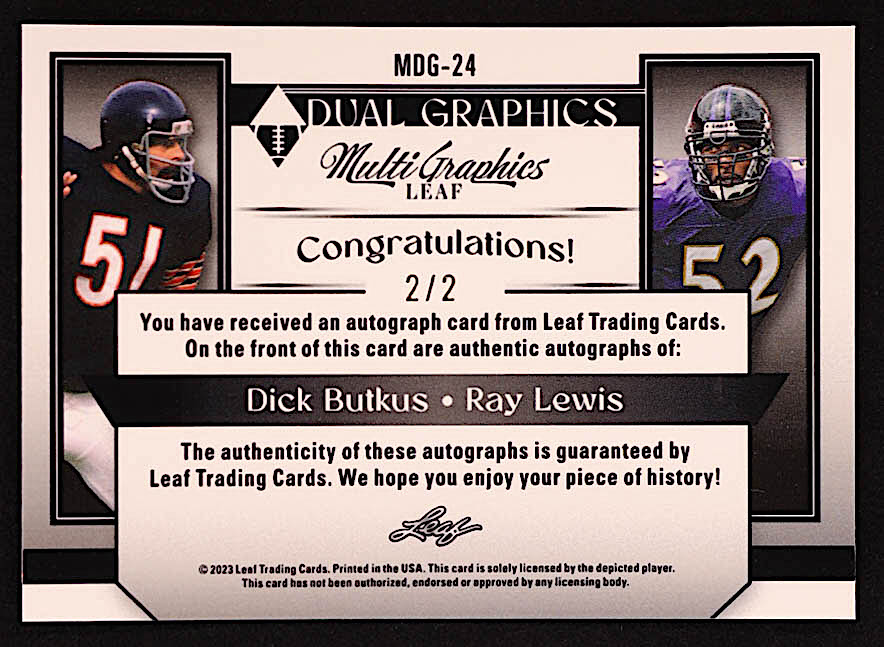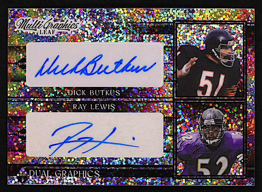 Dick Butkus / Ray Lewis 2023 Leaf Eclectic Multigraphics Dual Graphics Metalized Sparkles Oil Spill #MDG24 #2/2