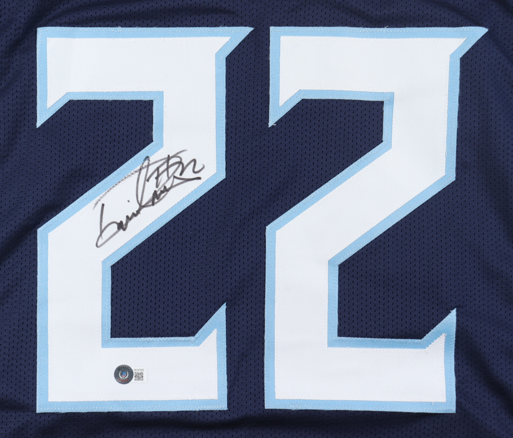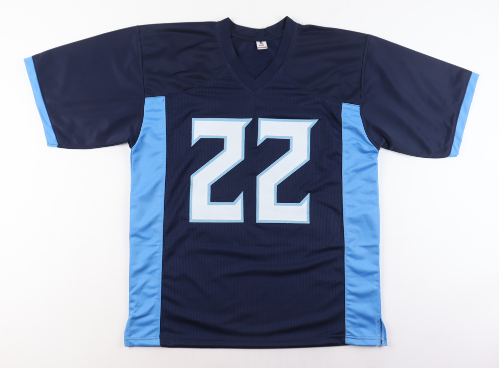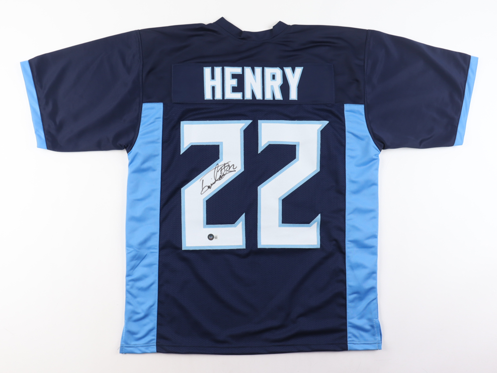Custom jersey with everything sewn on, size XL. Hand-signed by Derrick Henry.
