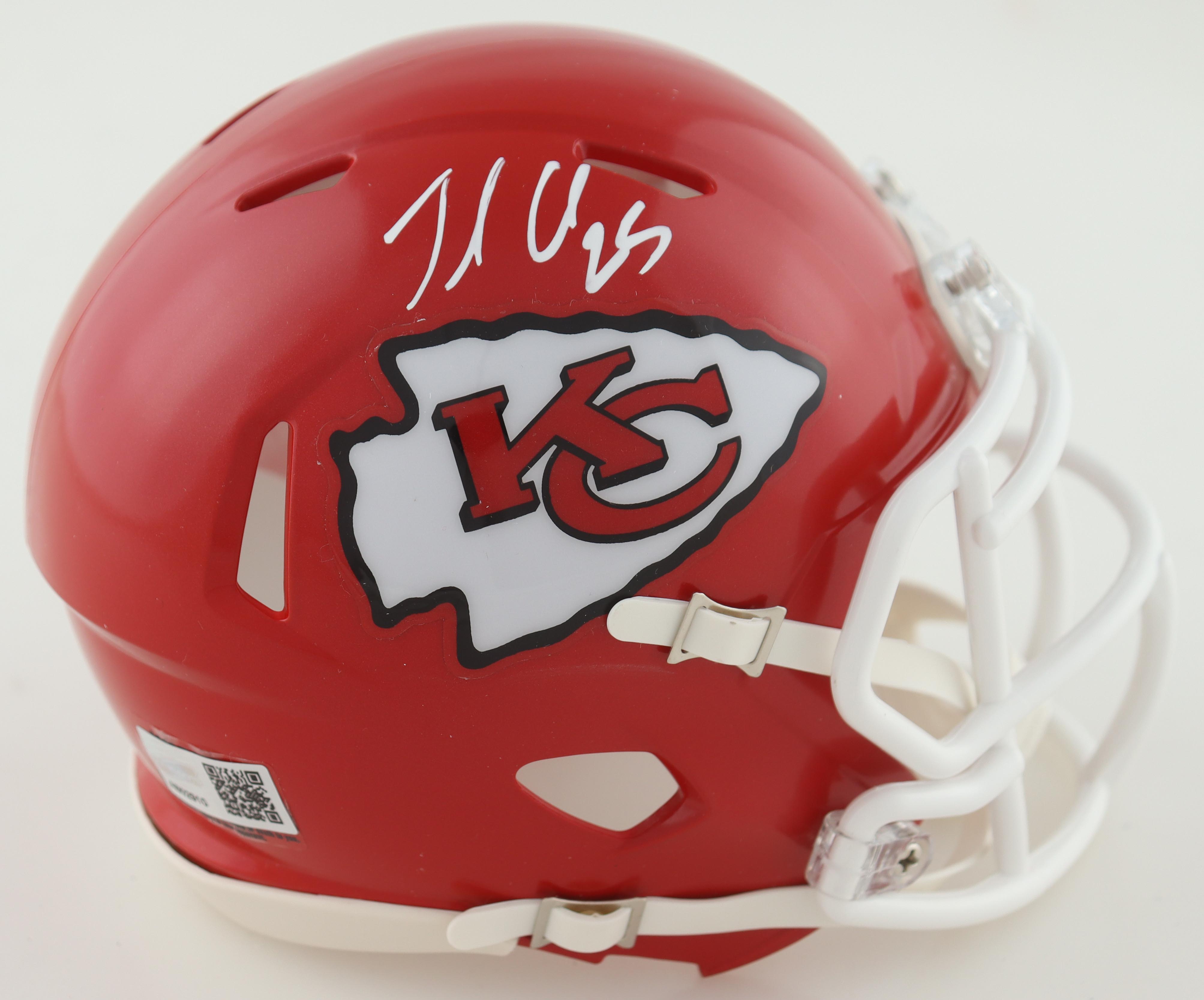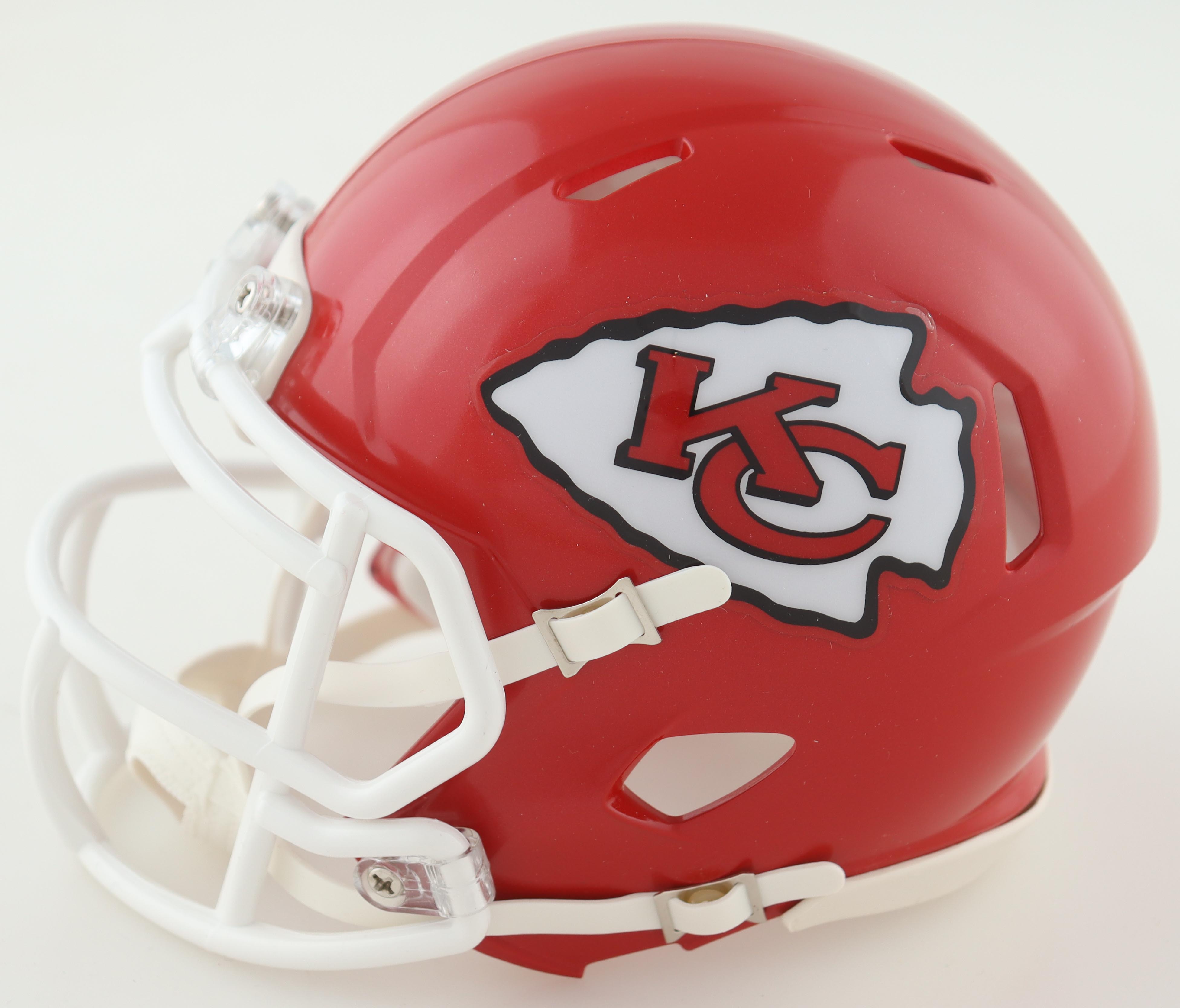 Riddell Kansas City Chiefs speed mini helmet. Hand-signed by Jamaal Charles.