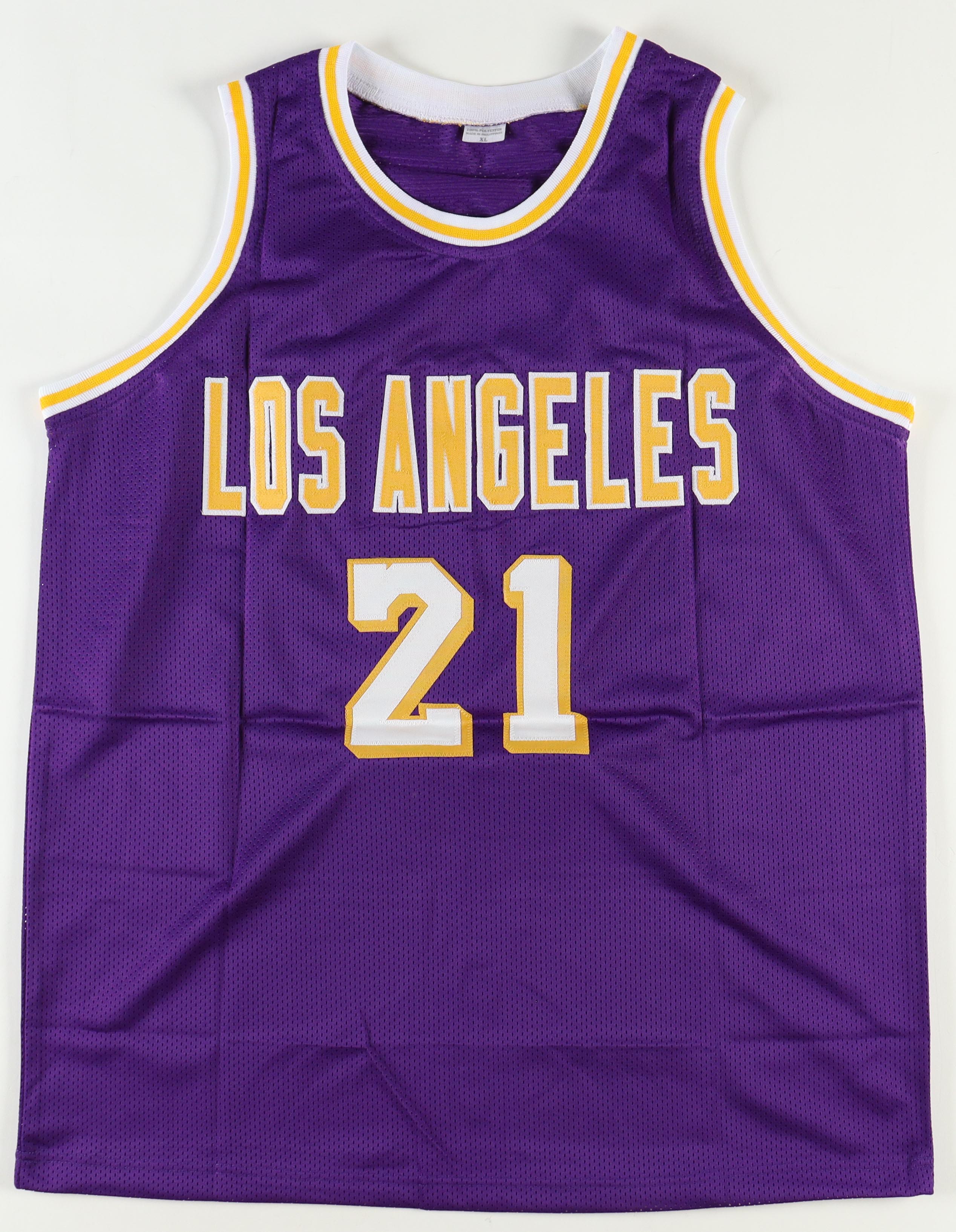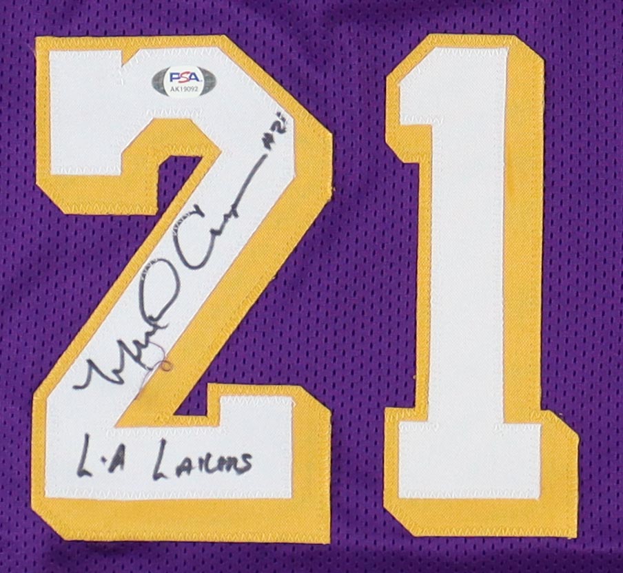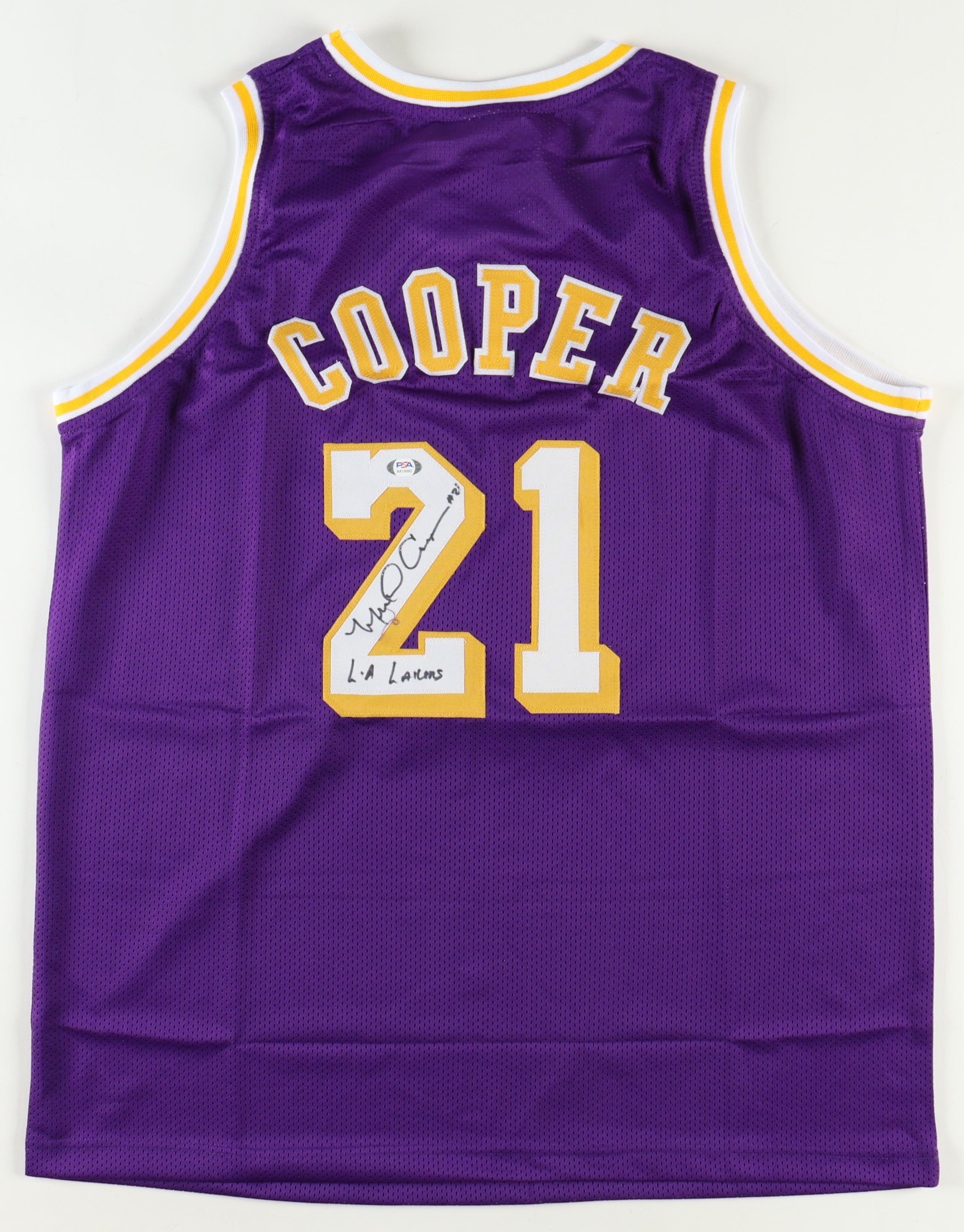 Custom jersey with everything sewn on, size XL. Hand-signed and inscribed by Michael Cooper.