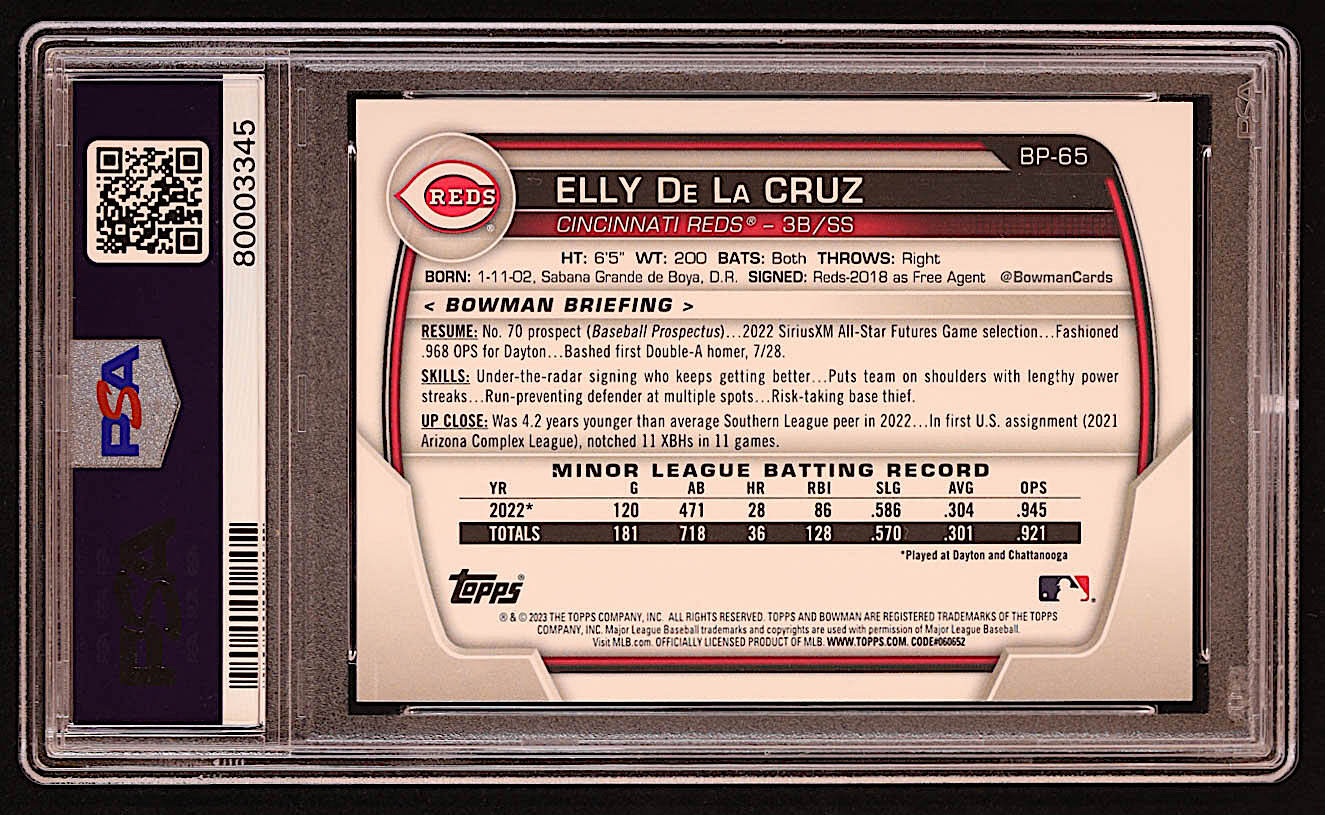 Elly De La Cruz 2023 Bowman Prospects #BP65 RC (PSA 10)