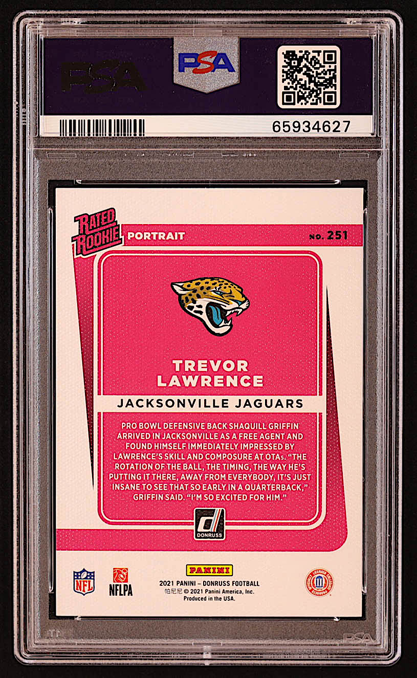 Trevor Lawrence 2021 Donruss Rated Rookies Portrait #251 RC (PSA 10)