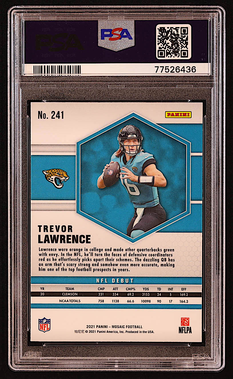 Trevor Lawrence 2021 Panini Mosaic #241 DEB RC (PSA 10)