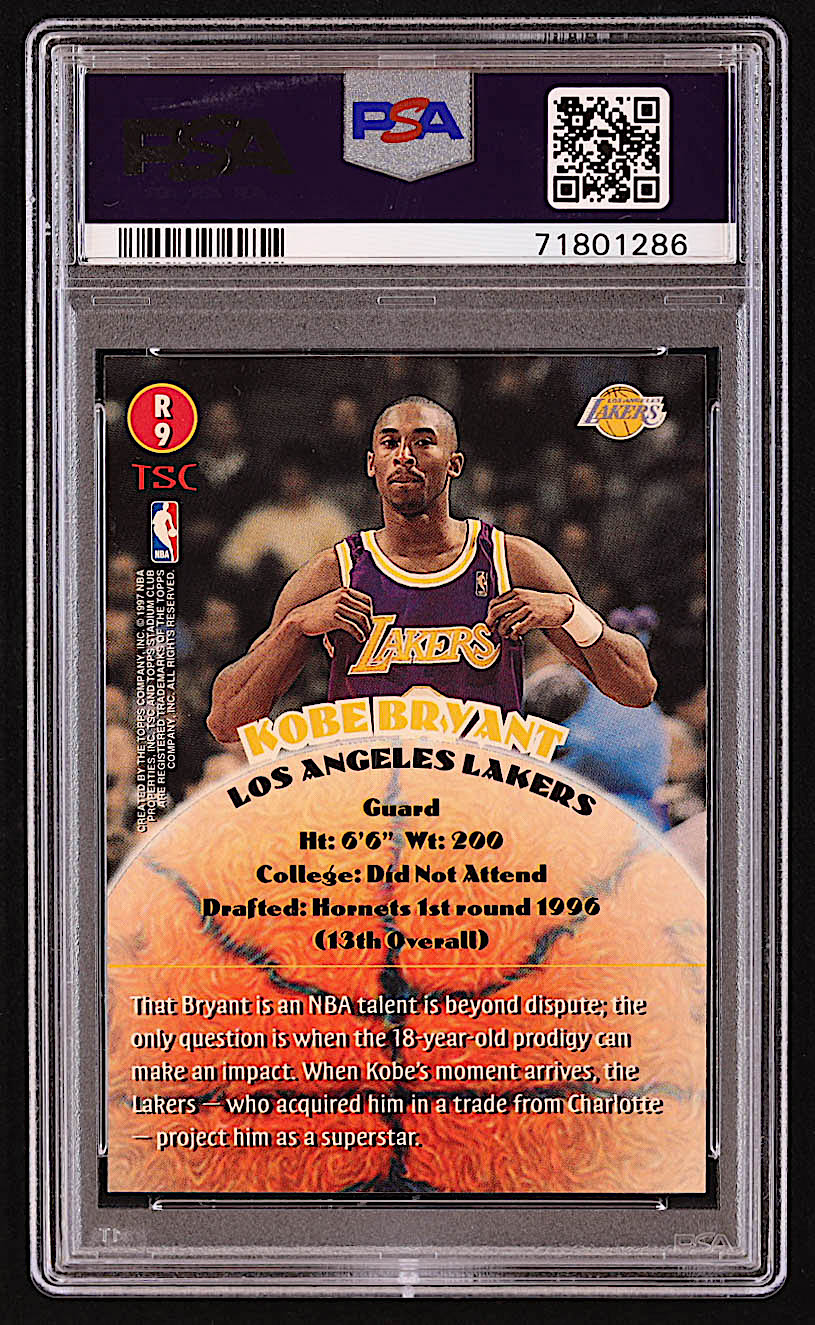 Kobe Bryant 1996-97 Stadium Club Rookies 2 #R9 RC (PSA 9)
