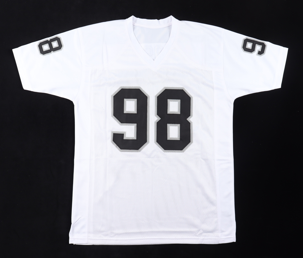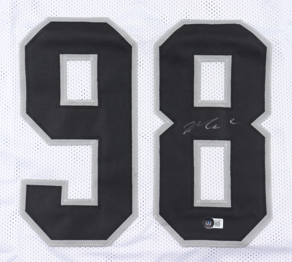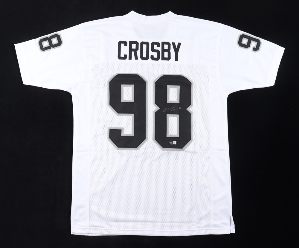 Custom jersey. Everything is sewn on, size XL. Hand-signed by Maxx Crosby. Please note, the signature is fading.