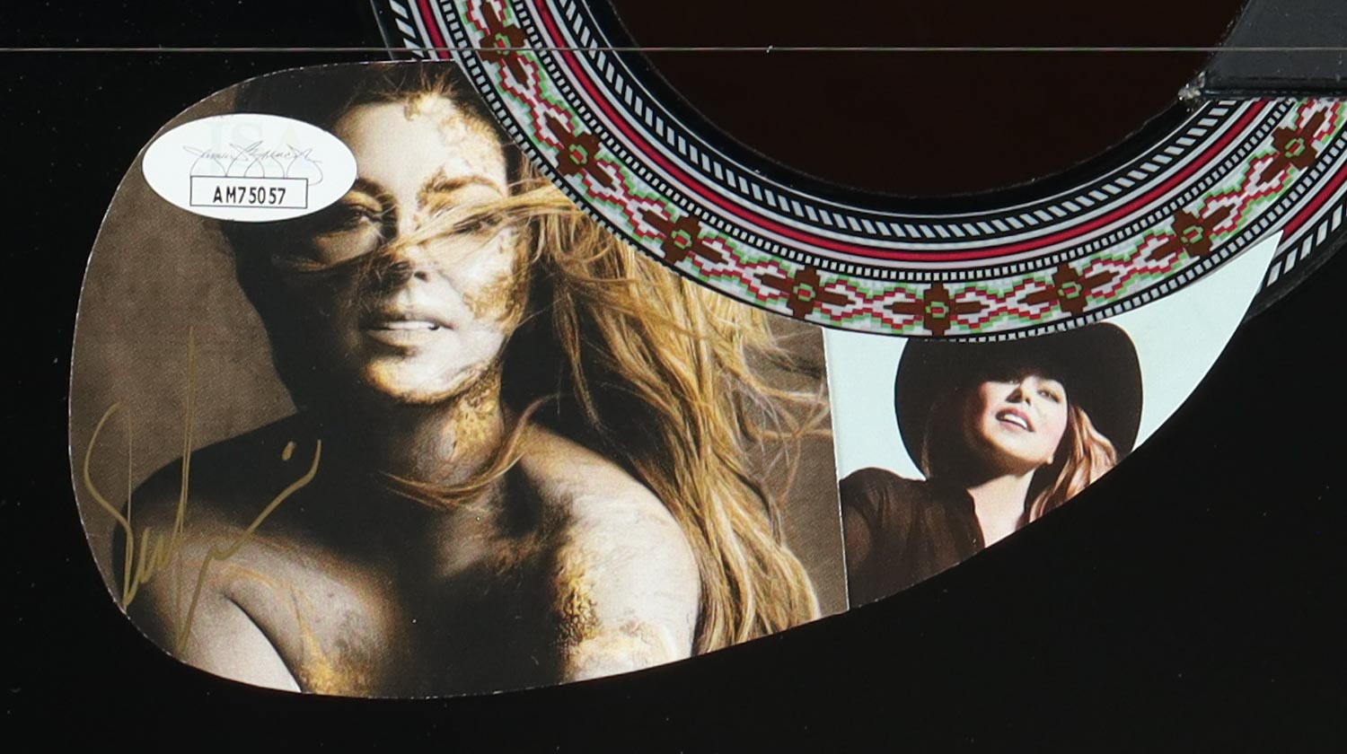 Guitar measures 38” in size has been hand-signed on the pick-guard by Shania Twain.