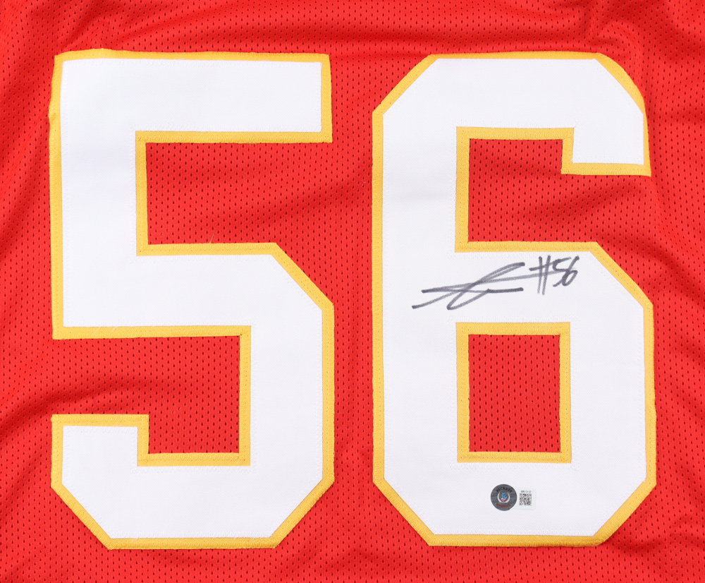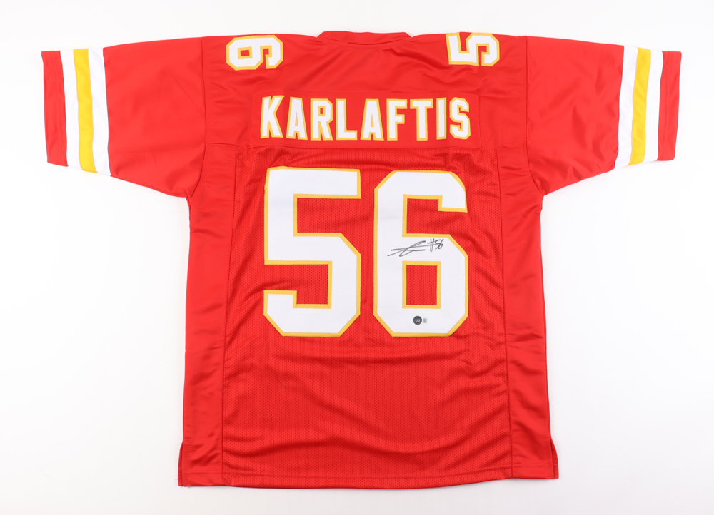 Custom jersey. Everything is sewn on, size XL. Hand-signed by George Karlaftis.