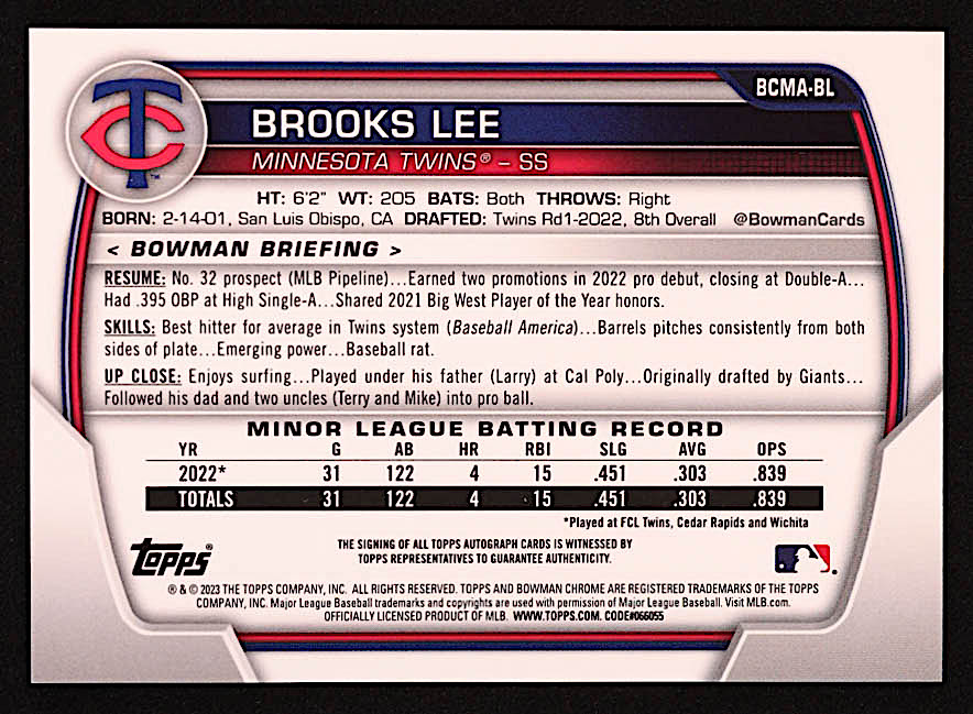 Brooks Lee 2023 Bowman Chrome Mega Box Autographs #BCMABL RC