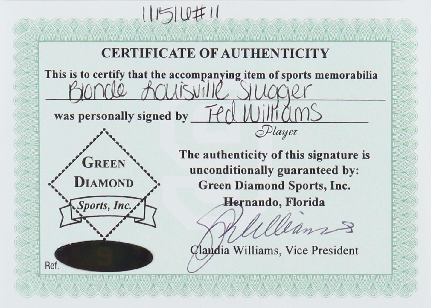 The autograph(s) includes an official James Spence Authentication (JSA) hologram and matching LOA as well as an official Ted Williams hologram and matching COA from Green Diamond for authenticity purposes.