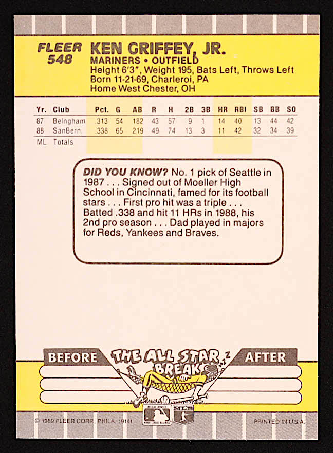 Ken Griffey Jr. 1989 Fleer #548 RC