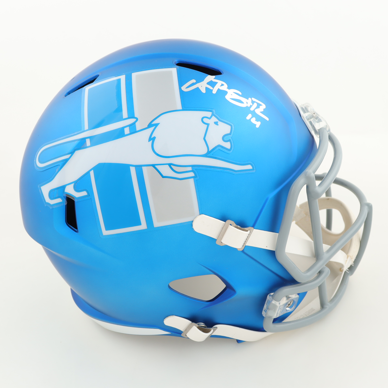 Riddell Detroit Lions full-size replica Speed helmet. Hand-signed by Amon-Ra St. Brown.