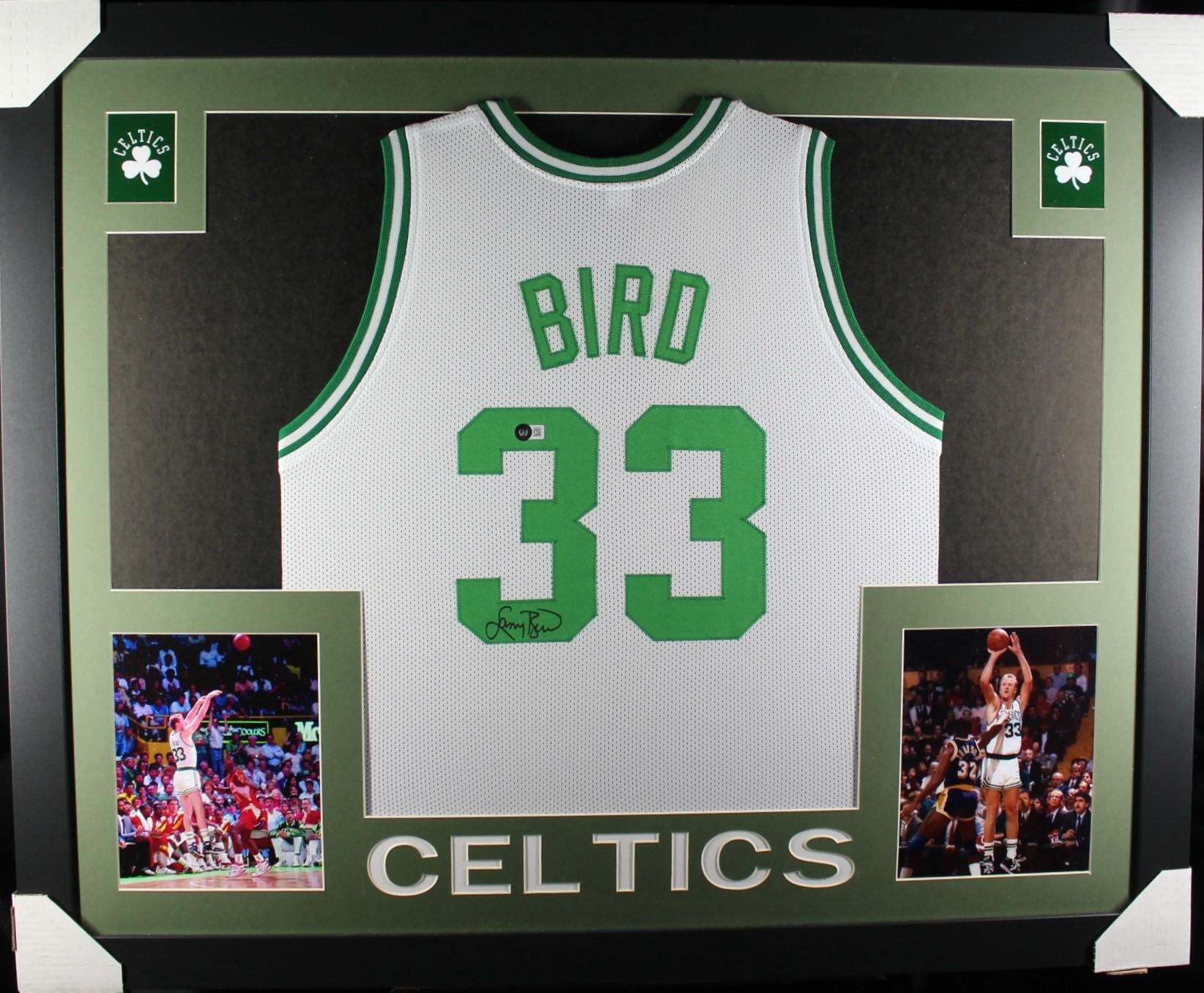 Custom frame measures approximately 35" x 43" in size and features a jersey that has been hand-signed by Larry Bird (HOF).