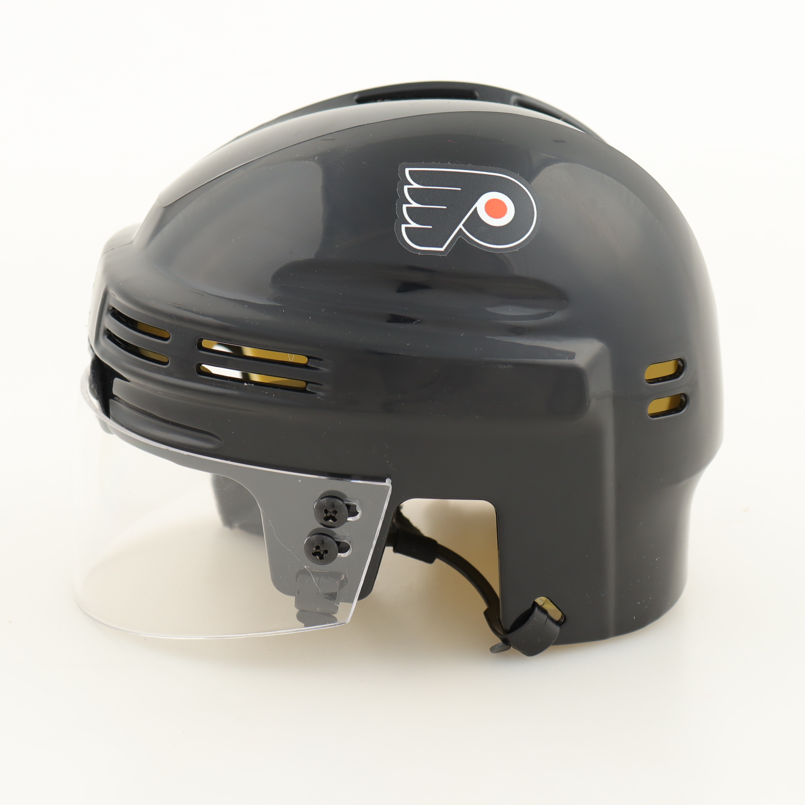Philadelphia Flyers hockey mini helmet has been hand-signed by John LeClair (Philadelphia Flyers).