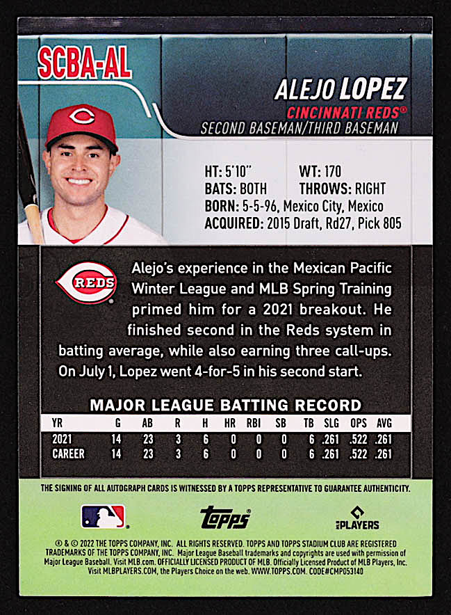 Alejo Lopez 2022 Stadium Club Autographs #SCBAAL RC