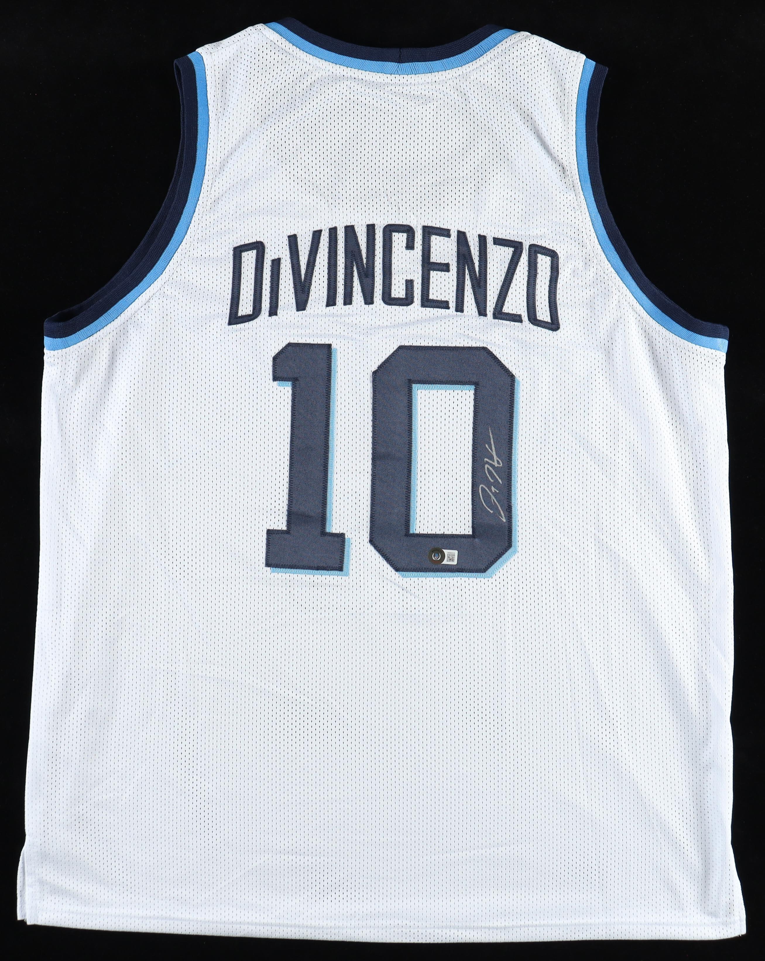 Custom on-court style jersey. Everything is sewn on, size XL. Jersey is hand-signed by Donte DiVincenzo (Villanova University.