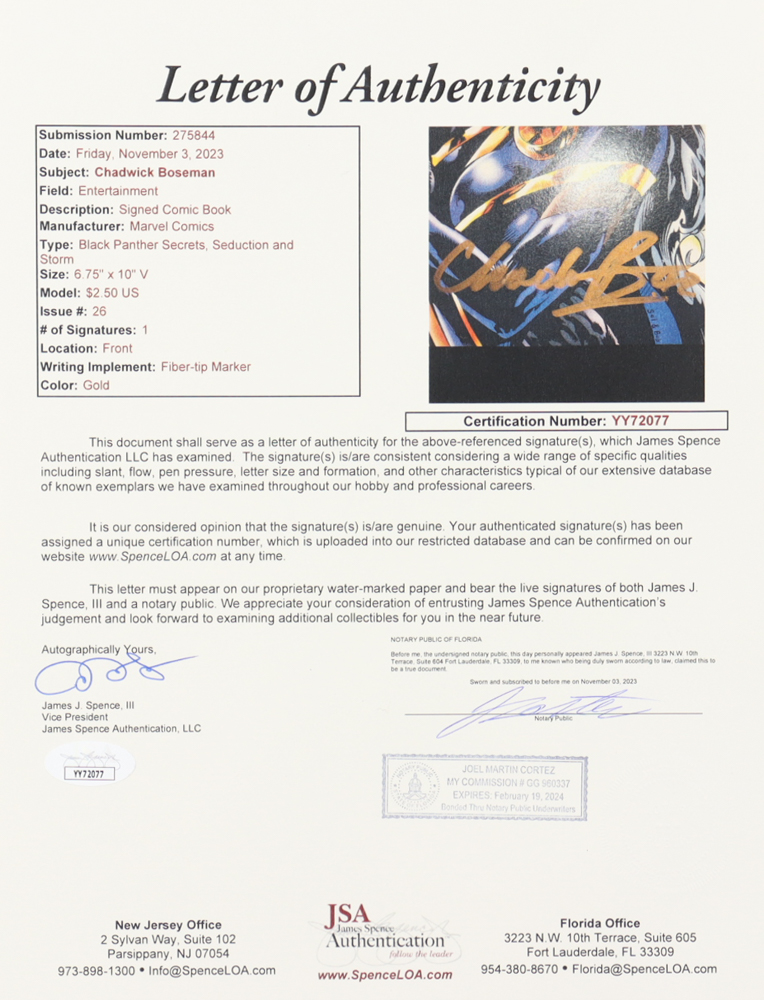 Chadwick Boseman Signed 1998 "Black Panther" Issue #26 Marvel Comic Book (JSA)