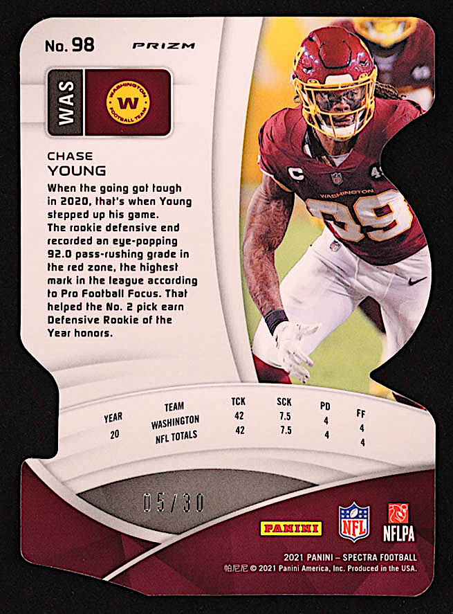 Chase Young 2021 Panini Spectra Neon Green Die Cut #98 #05/30