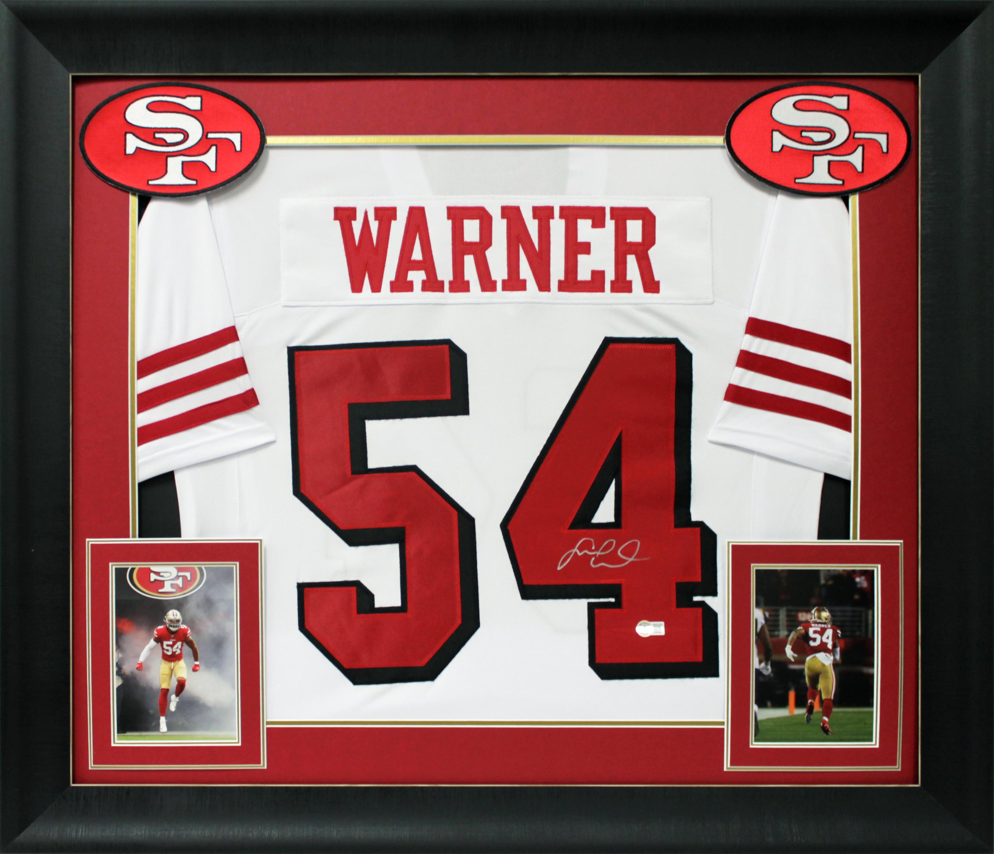 Custom frame measures approximately 32" x 37" in size and features a jersey that has been hand-signed by Fred Warner.