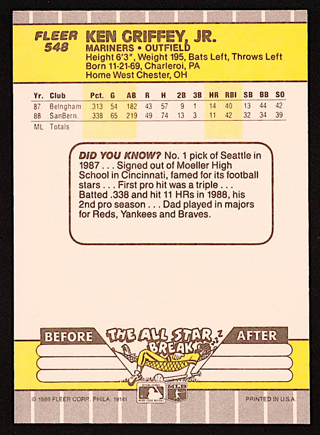 Ken Griffey Jr. 1989 Fleer #548 RC