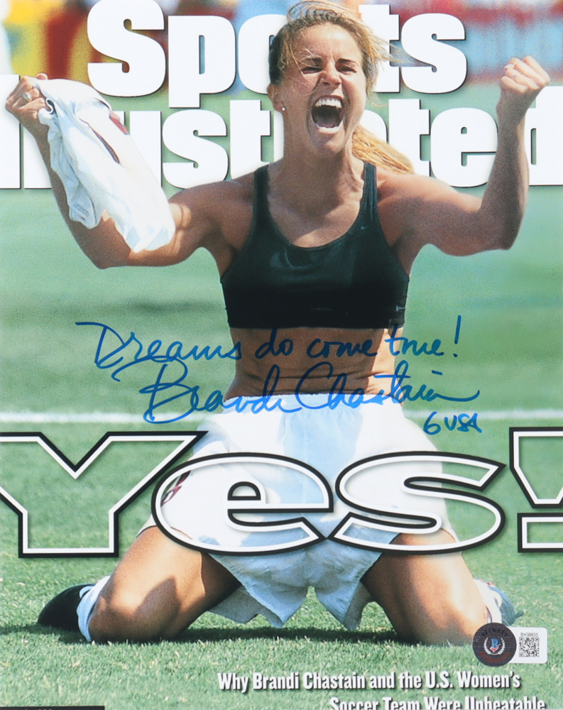 Brandi Chastain Signed Team USA 8x10 Photo Inscribed "Dreams Do Come True!" & "6 USA" (Beckett)