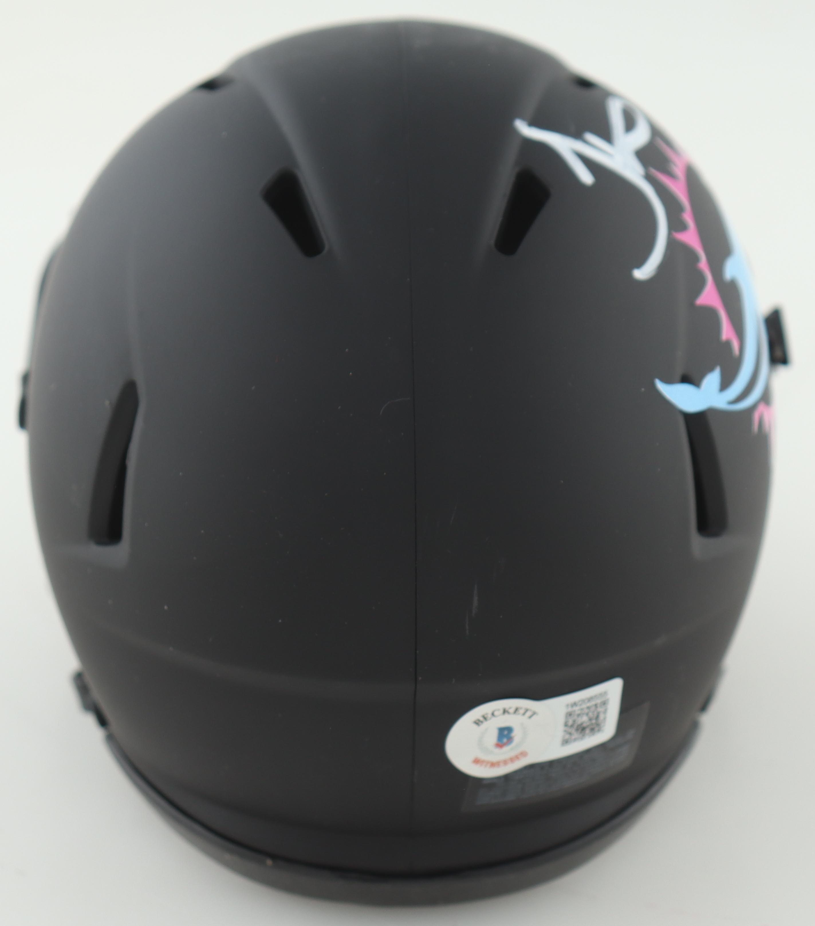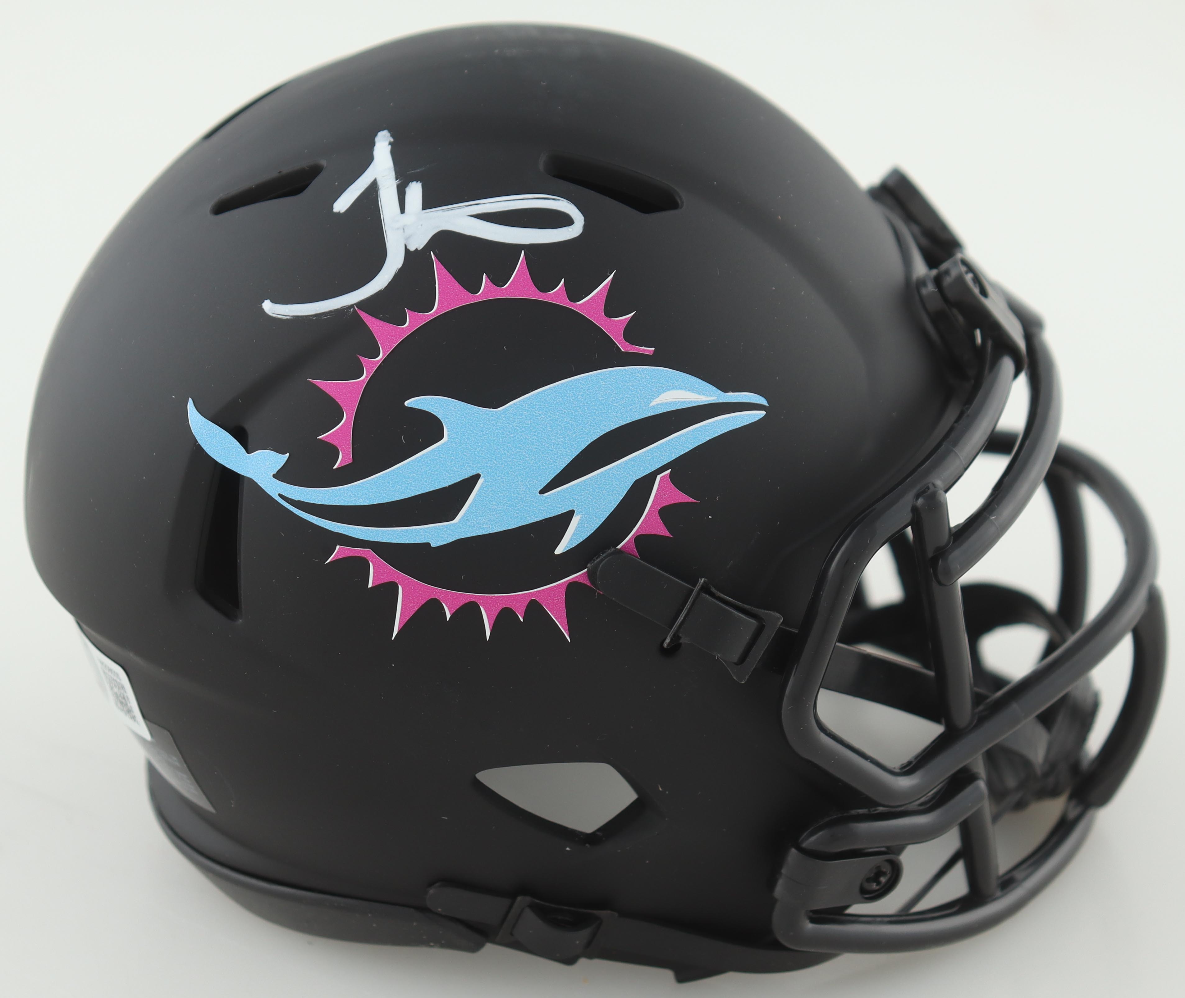 Riddell Miami Dolphins Miami Vice Alternate Speed mini helmet. Hand-signed and inscribed by Tyreek Hill.